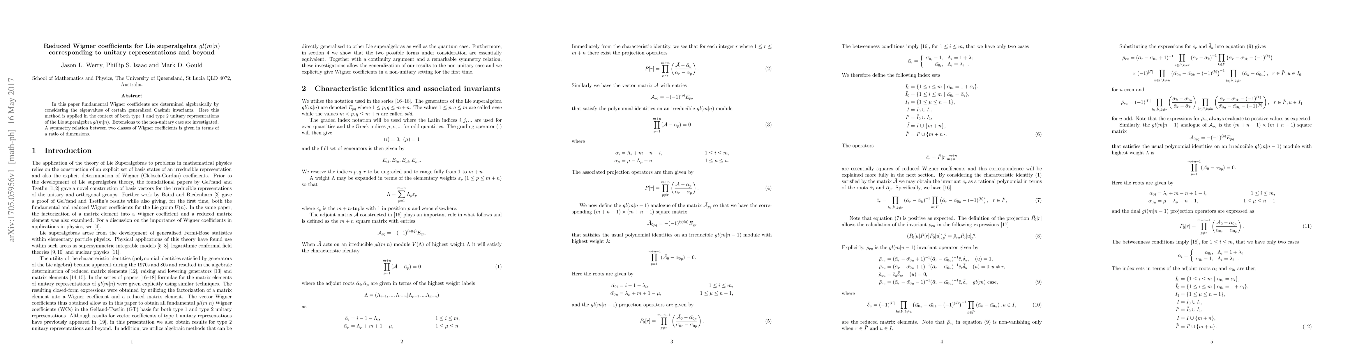 In this paper fundamental Wigner coefficients are determined algebraically by considering the eigenvalues of certain generalized Casimir invariants. Here this method is applied in the context of both type 1 and type 2 unitary representations of the Lie superalgebra gl(mjn). Extensions to the non-unitary case are investigated. A symmetry relation between two classes of Wigner coefficients is given in terms of a ratio of dimensions.