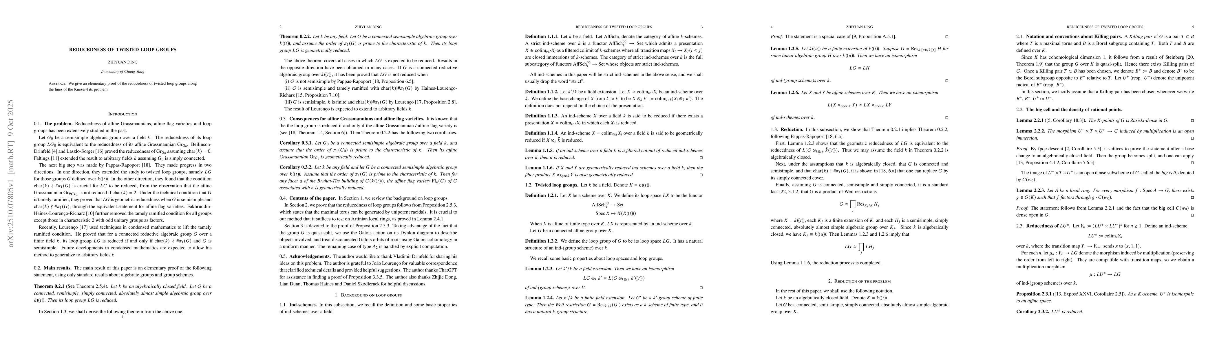 The research employs a combination of algebraic group theory, representation theory, and homological algebra to analyze the structure of twisted loop groups and their associated flag varieties. It leverages properties of reductive groups, unipotent subgroups, and the Kneser-Tits conjecture to establish generation results for specific groups like SU(3).
