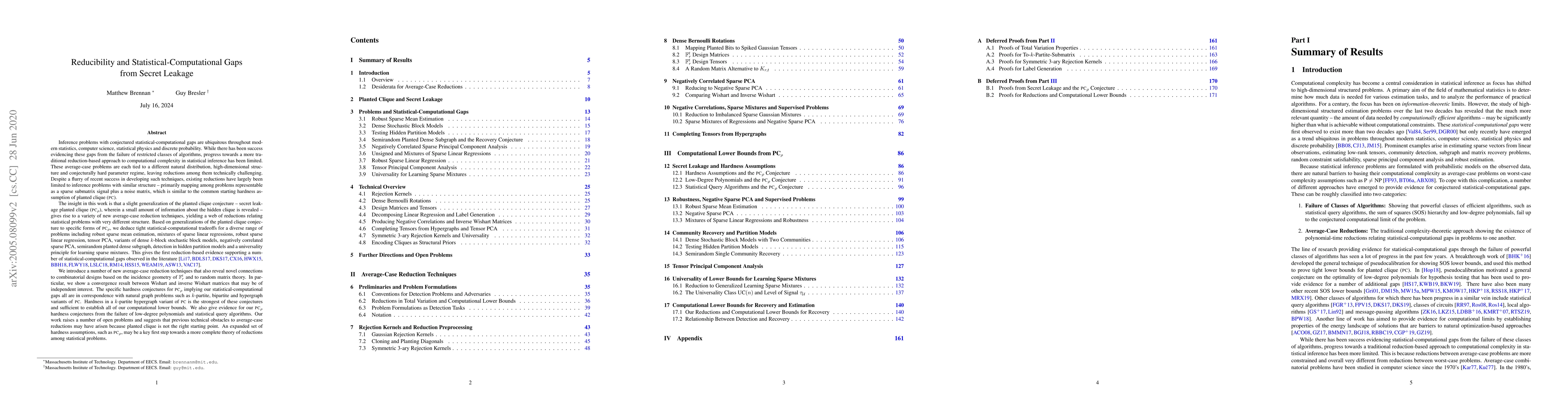 This paper explores the reducibility and statistical-computational gaps in inference problems by generalizing the planted clique conjecture to secret leakage planted clique. It establishes a web of reductions among diverse statistical problems, revealing tight tradeoffs and novel connections to combinatorial designs and random matrix theory.