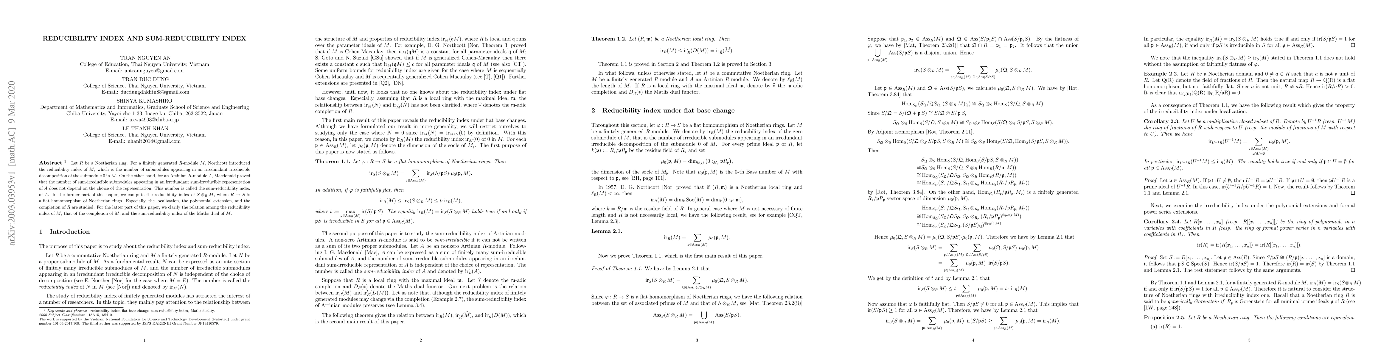 Let $R$ be a Noetherian ring. For a finitely generated $R$-module $M$, Northcott introduced the reducibility index of $M$, which is the number of submodules appearing in an irredundant irreducible decomposition of the submodule $0$ in $M$. On the other hand, for an Artinian $R$-module $A$, Macdonald proved that the number of sum-irreducible submodules appearing in an irredundant sum-irreducible representation of $A$ does not depend on the choice of the representation. This number is called the sum-reducibility index of $A$. In the former part of this paper, we compute the reducibility index of $S\otimes_R M$, where $R\to S$ is a flat homomorphism of Noetherian rings. Especially, the localization, the polynomial extension, and the completion of $R$ are studied. For the latter part of this paper, we clarify the relation among the reducibility index of $M$, that of the completion of $M$, and the sum-reducibility index of the Matlis dual of $M$.