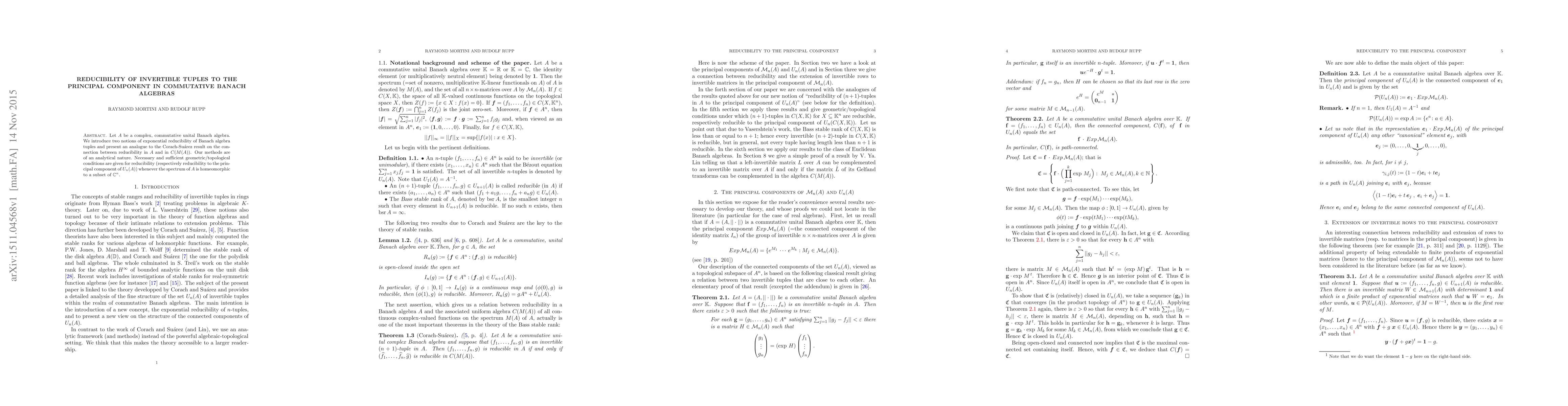 This paper explores how invertible tuples in commutative Banach algebras can be reduced to the principal component, providing conditions for reducibility based on the algebra's spectrum.