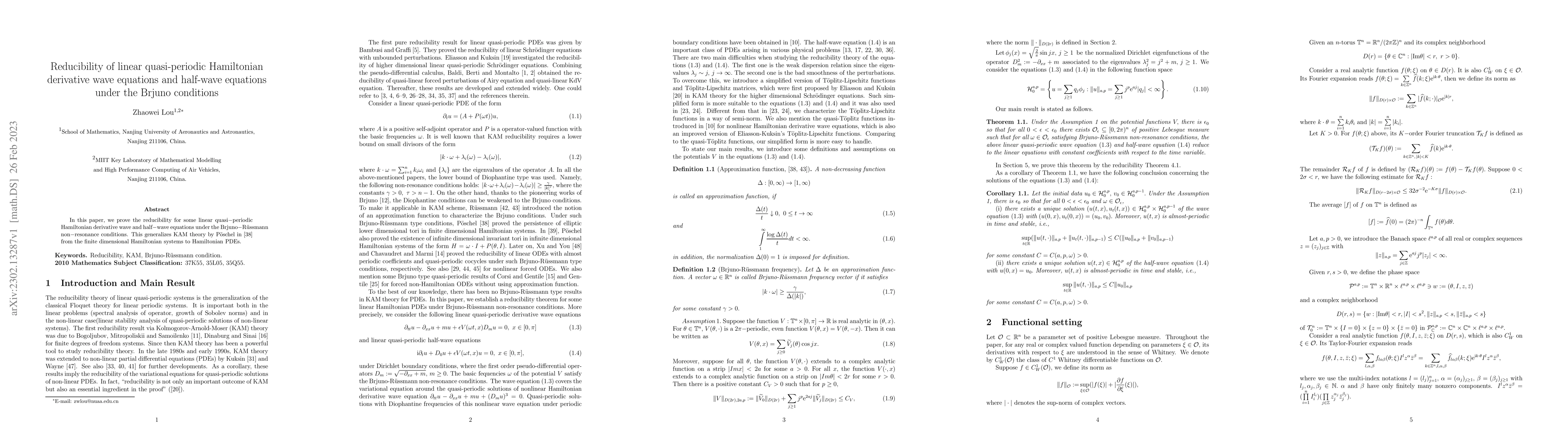 This paper proves the reducibility of linear quasi-periodic Hamiltonian derivative wave and half-wave equations under Brjuno conditions, extending P\"{o}schel's KAM theory from finite-dimensional systems to Hamiltonian PDEs.