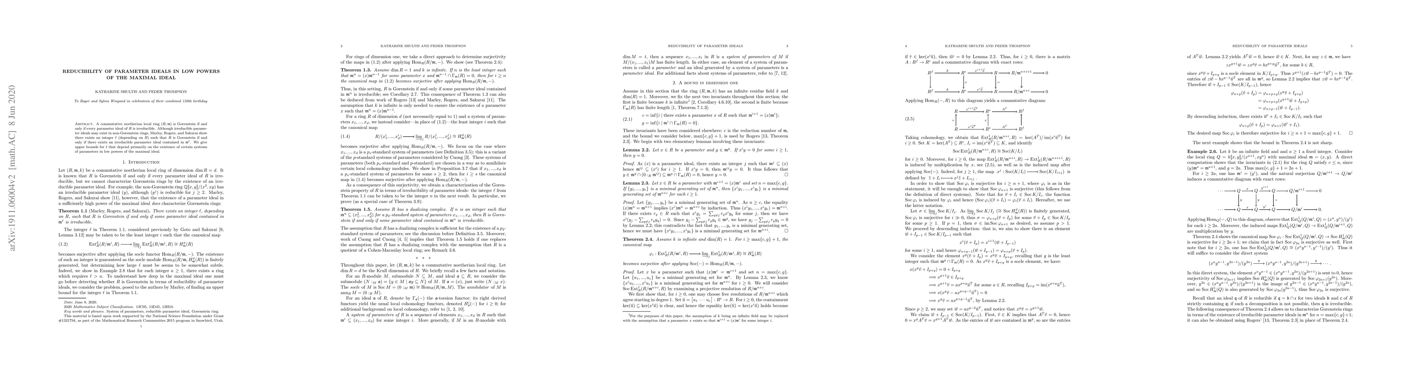 A commutative noetherian local ring is Gorenstein if every parameter ideal is irreducible, and there exists an integer ε depending on R such that R is Gorenstein if and only if an irreducible parameter ideal is contained in ζ±.