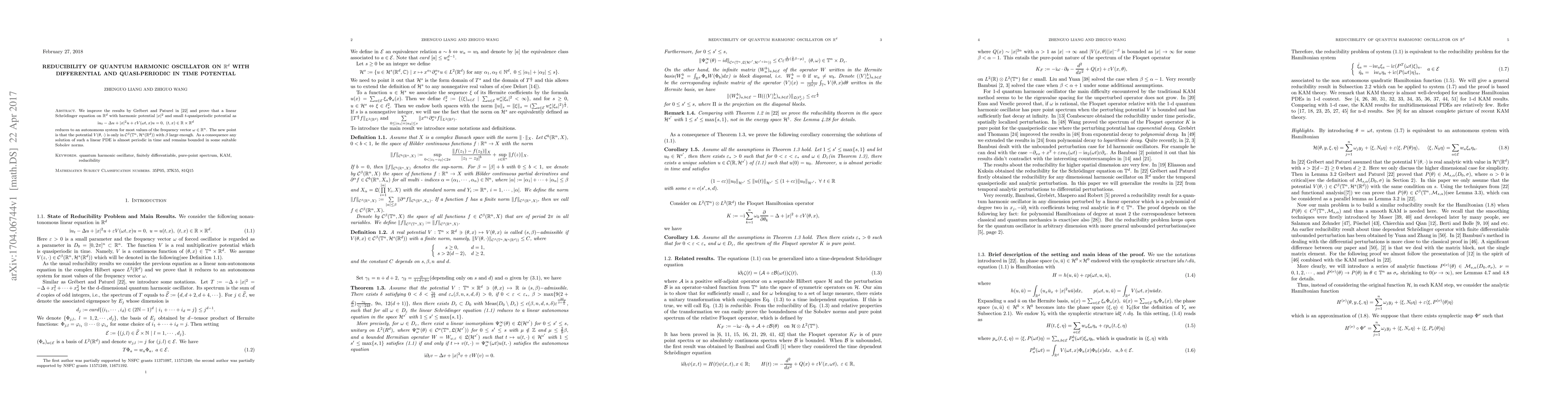 This research paper shows that a specific type of quantum harmonic oscillator equation can be reduced to an autonomous system for most values of the frequency vector, with solutions being almost periodic in time and bounded in certain norms.