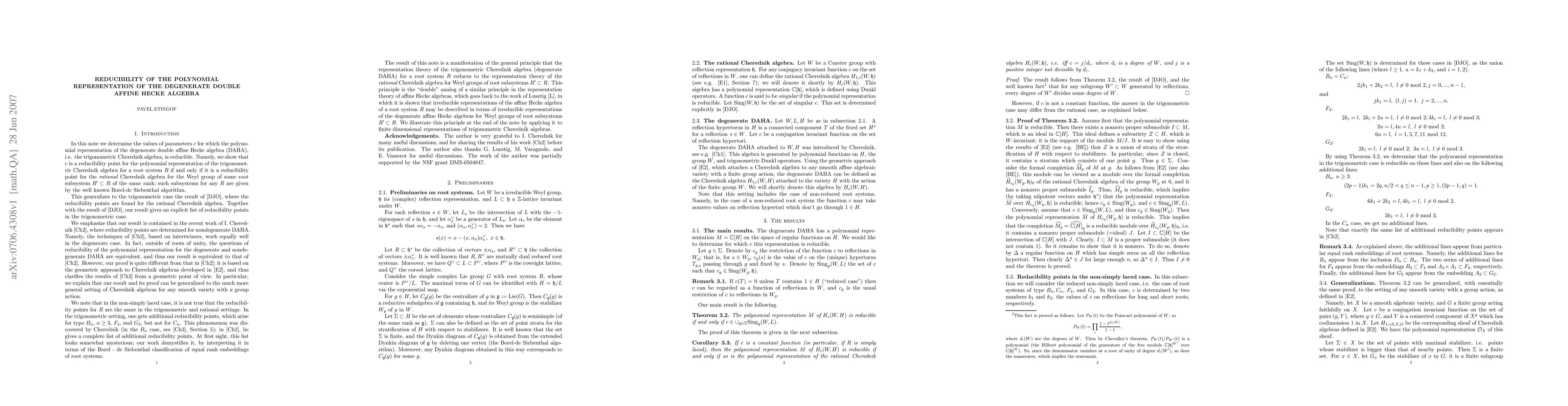 This paper identifies the parameter values that make the polynomial representation of the degenerate double affine Hecke algebra (trigonometric Cherednik algebra) reducible. It establishes that these values correspond to reducibility points of the rational Cherednik algebra for certain Weyl groups derived from root subsystems of the same rank, as determined by the Borel-de Siebenthal algorithm.