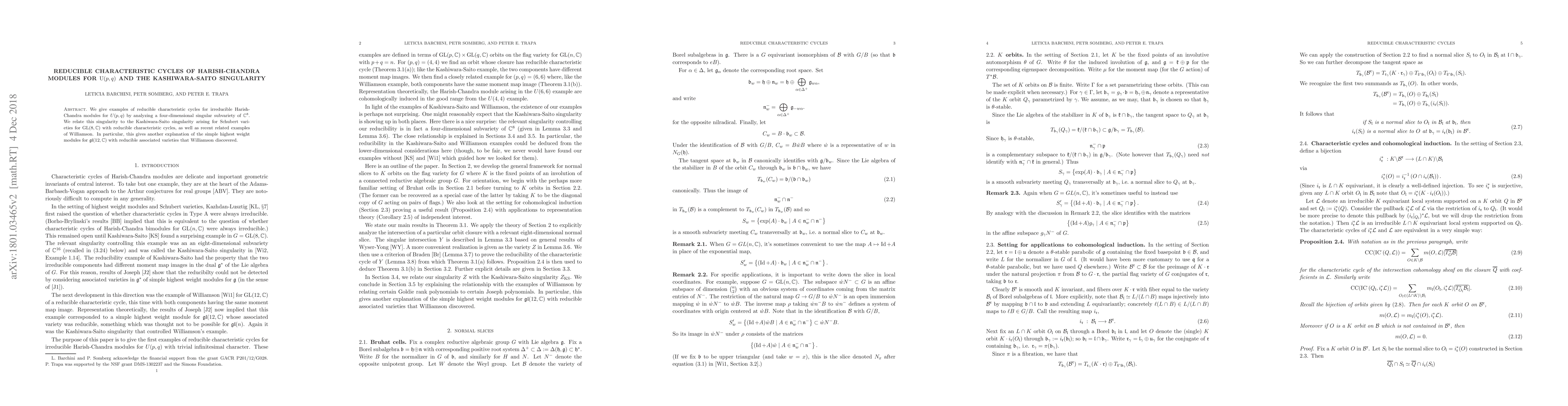 We give examples of reducible characteristic cycles for irreducible Harish-Chandra modules for $\mathrm{U}(p,q)$ by analyzing a four-dimensional singular subvariety of $\mathbb{C}^8$. We relate this singularity to the Kashiwara-Saito singularity arising for Schubert varieties for ${\mathrm{GL}}(8,\mathbb{C})$ with reducible characteristic cycles, as well as recent related examples of Williamson. In particular, this gives another explanation of the simple highest weight modules for ${\mathfrak{g}}{\mathfrak{l}}(12,\mathbb{C})$ with reducible associated varieties that Williamson discovered.