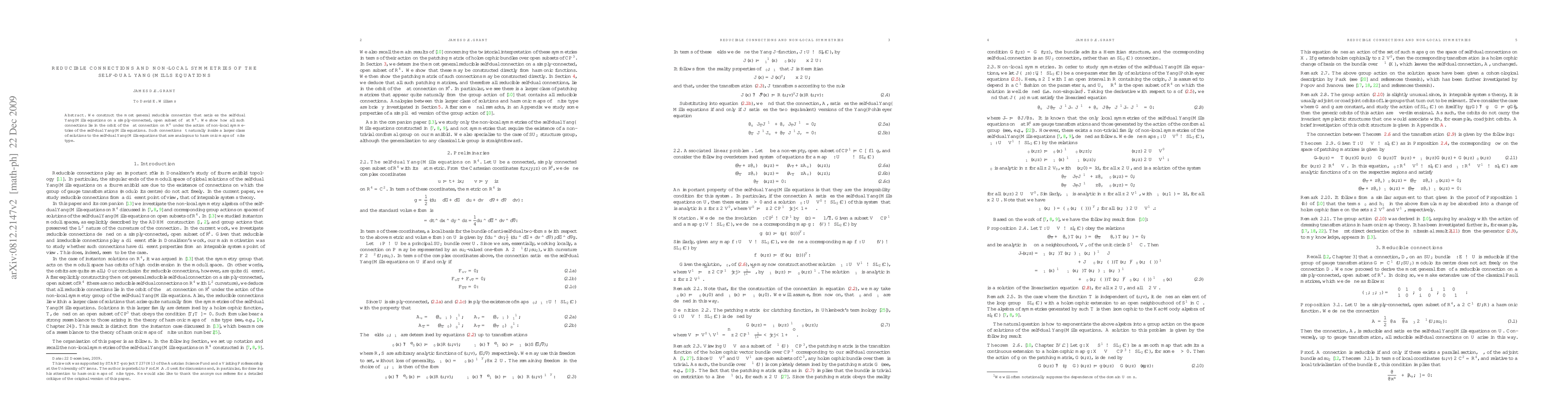 Summary: This paper explores reducible connections that satisfy the self-dual Yang-Mills equations in $\mathbb{R}^4$, demonstrating that these connections fall under the action of non-local symmetries and are part of a broader class analogous to harmonic maps of finite type.
