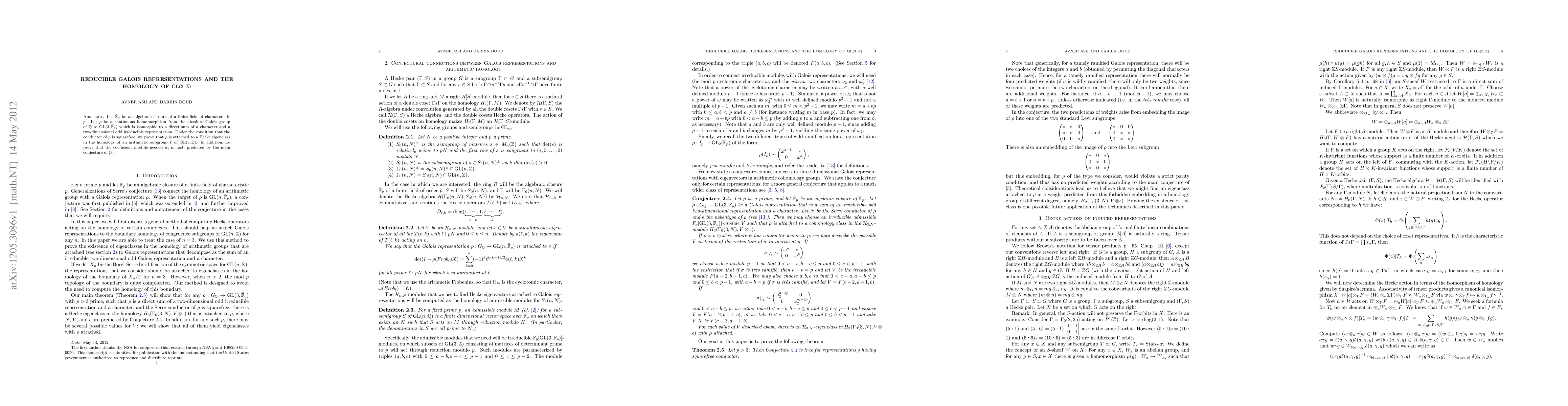 This paper proves that a specific type of reducible Galois representation, composed of a character and a two-dimensional odd irreducible representation, is linked to a Hecke eigenclass in the homology of an arithmetic subgroup of $\GL(3,\Z)$, provided the conductor is squarefree. It also supports the conjecture of Ash, Doud, Pollack, and Sinnott regarding the predicted coefficient module.