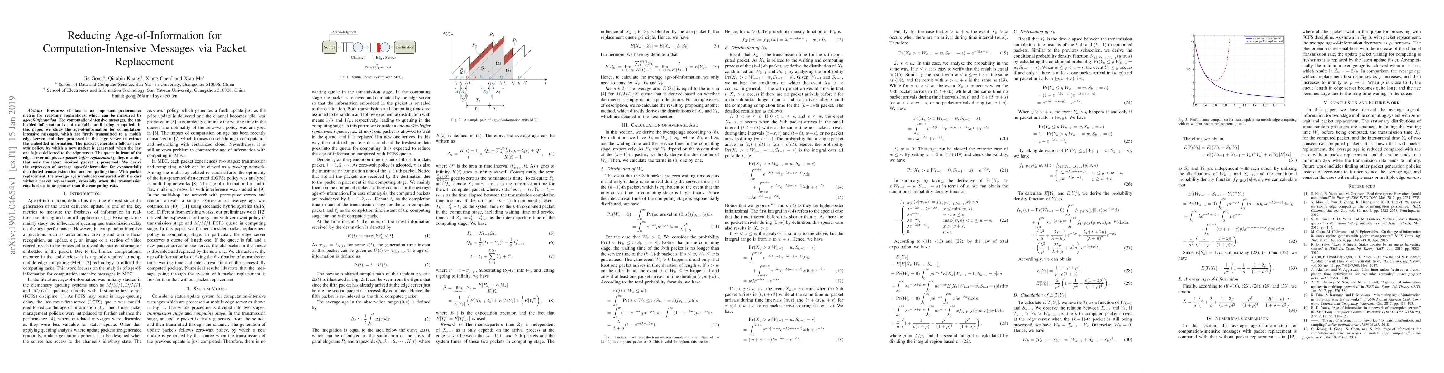 This paper investigates methods to reduce the age-of-information for computation-intensive messages by employing a zero-wait packet generation policy and a one-packet-buffer replacement strategy at a mobile edge server. The study finds that packet replacement significantly lowers the average age-of-information, particularly when the transmission rate exceeds the computing rate.