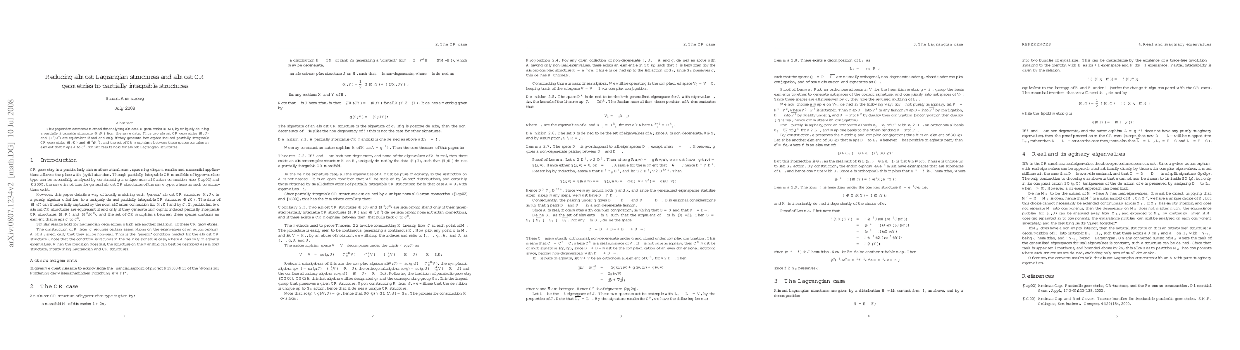 This paper presents a method to transform almost CR geometries and almost Lagrangian structures into partially integrable structures, establishing equivalence through isomorphic induced structures and the existence of CR morphisms. The approach provides a unique framework for analyzing these geometric structures.