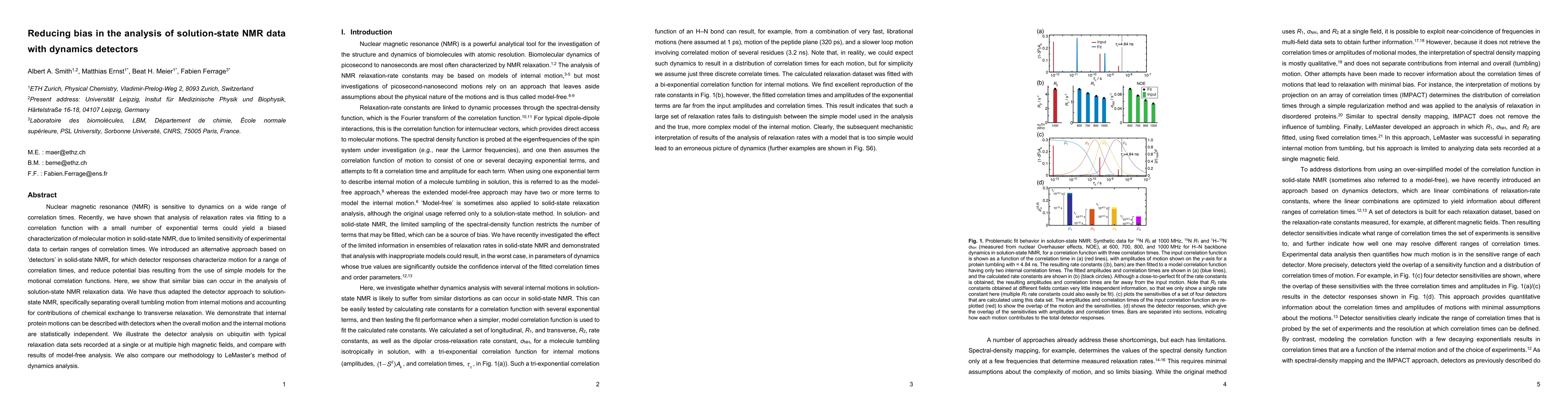 This paper introduces an alternative method using "detectors" to reduce bias in the analysis of solution-state NMR relaxation data, addressing limitations in traditional model-based approaches. The detector method separates overall tumbling motion from internal motions and accounts for chemical exchange, demonstrating its effectiveness on ubiquitin data.