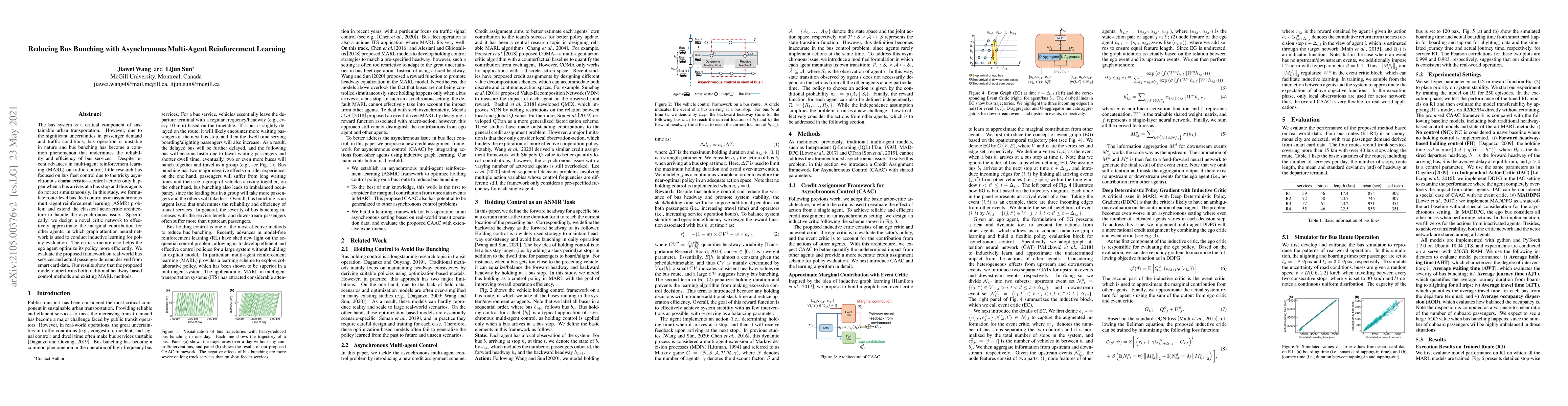 This paper proposes an asynchronous multi-agent reinforcement learning (ASMR) framework to tackle bus bunching in urban transportation. The study extends the actor-critic architecture with a novel critic network using graph attention neural networks to address the asynchronous nature of bus arrivals. The results demonstrate superior performance over traditional and existing MARL methods in real-world bus service scenarios.