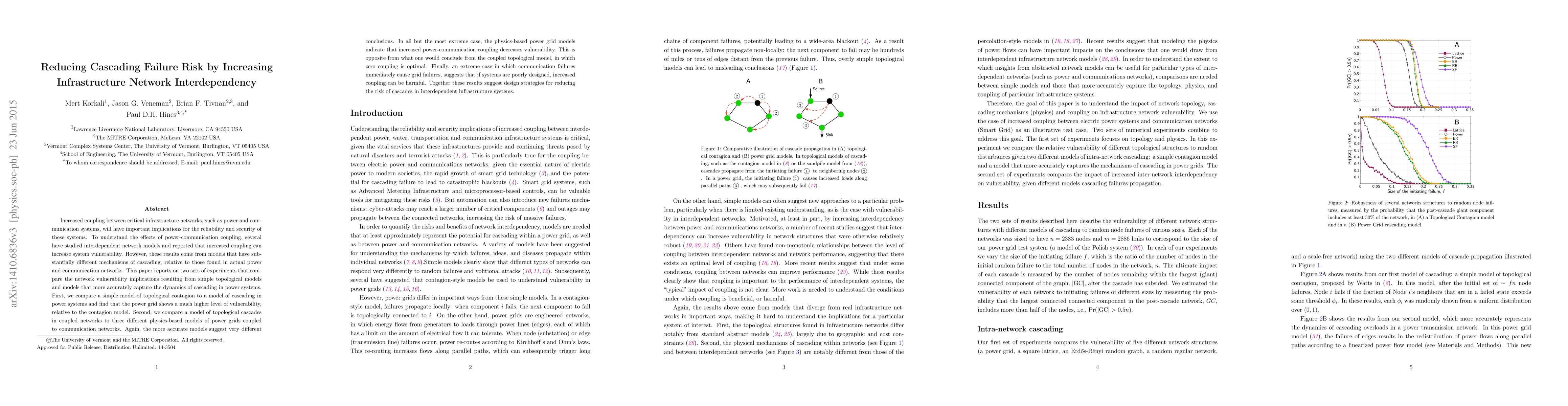 Increased coupling between critical infrastructure networks, such as power and communication systems, will have important implications for the reliability and security of these systems. To understand the effects of power-communication coupling, several have studied interdependent network models and reported that increased coupling can increase system vulnerability. However, these results come from models that have substantially different mechanisms of cascading, relative to those found in actual power and communication networks. This paper reports on two sets of experiments that compare the network vulnerability implications resulting from simple topological models and models that more accurately capture the dynamics of cascading in power systems. First, we compare a simple model of topological contagion to a model of cascading in power systems and find that the power grid shows a much higher level of vulnerability, relative to the contagion model. Second, we compare a model of topological cascades in coupled networks to three different physics-based models of power grids coupled to communication networks. Again, the more accurate models suggest very different conclusions. In all but the most extreme case, the physics-based power grid models indicate that increased power-communication coupling decreases vulnerability. This is opposite from what one would conclude from the coupled topological model, in which zero coupling is optimal. Finally, an extreme case in which communication failures immediately cause grid failures, suggests that if systems are poorly designed, increased coupling can be harmful. Together these results suggest design strategies for reducing the risk of cascades in interdependent infrastructure systems.