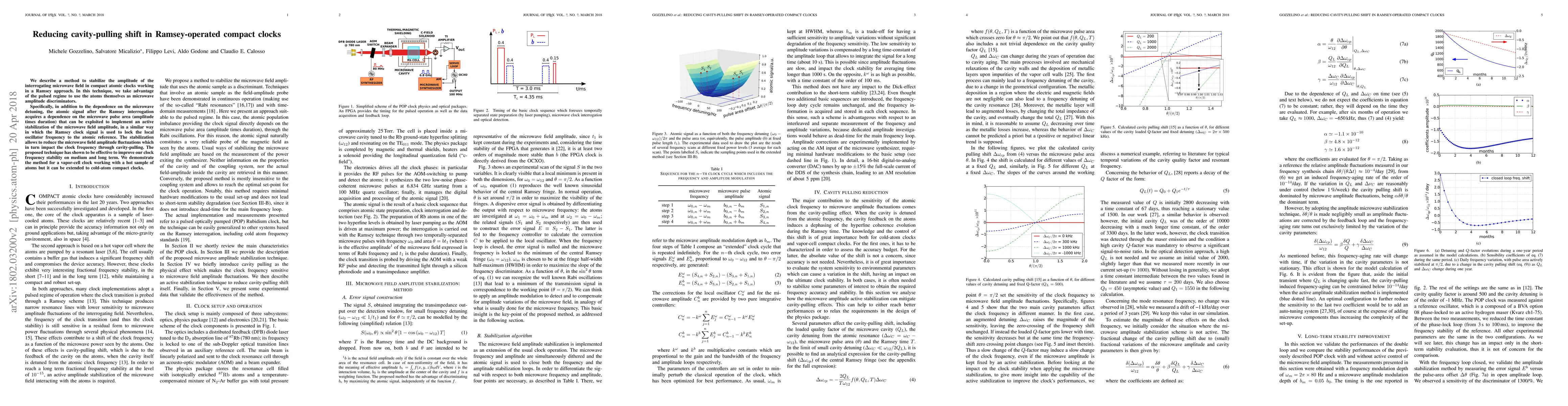 This paper proposes a method to stabilize the amplitude of the microwave field in compact atomic clocks using a Ramsey interrogation technique, leveraging the atoms to actively correct for microwave amplitude fluctuations and reduce the cavity-pulling effect, thereby improving clock stability and long-term drift. The technique is demonstrated in a vapor-cell clock but is applicable to cold-atom clocks as well.