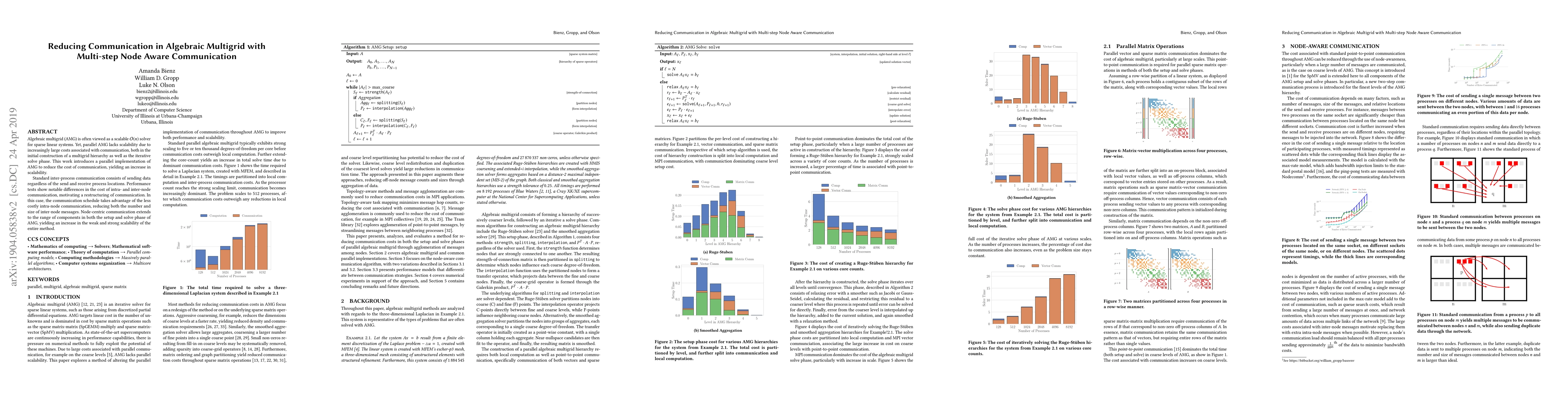 This paper proposes a parallel implementation of algebraic multigrid (AMG) that reduces communication costs by utilizing node-aware communication strategies, which leverage less expensive intra-node communication to enhance scalability during both the construction and iterative solve phases of AMG. The results demonstrate significant improvements in weak and strong scalability.