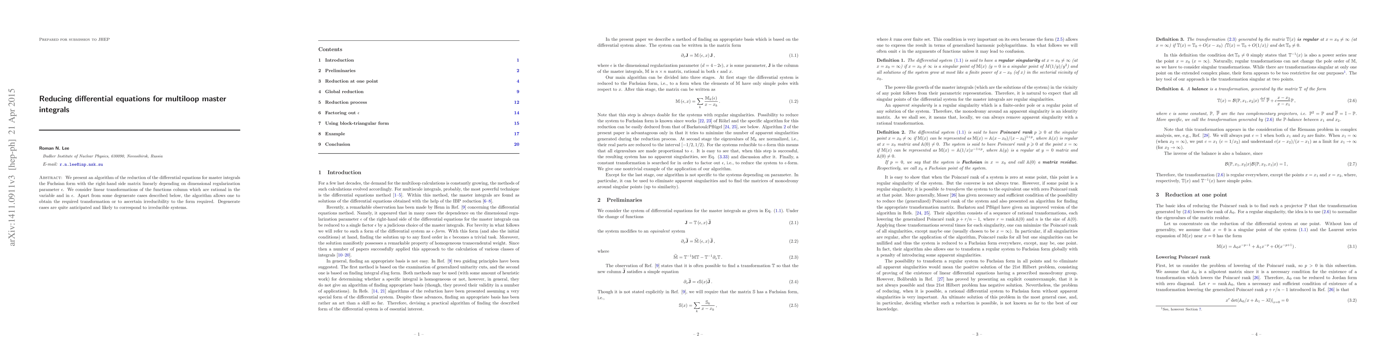 This paper introduces an algorithm to reduce differential equations for multiloop master integrals into a Fuchsian form, focusing on linear transformations of rational functions dependent on the regularization parameter $\epsilon$. The method determines the necessary transformation or confirms irreducibility, with anticipated degenerate cases likely representing irreducible systems.