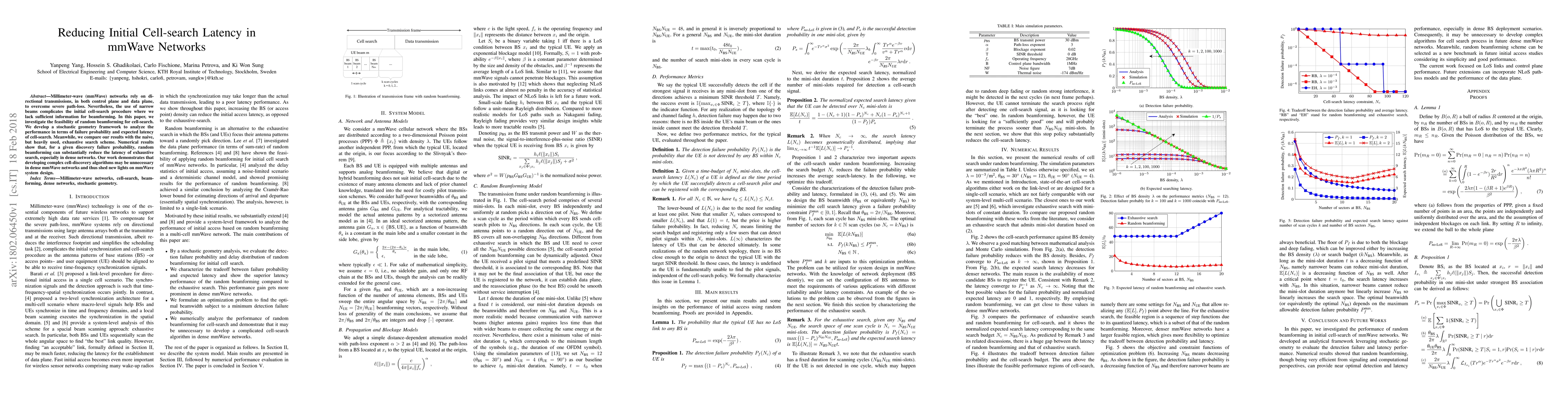 This paper explores the use of random beamforming to reduce initial cell-search latency in mmWave networks, demonstrating that it can significantly lower latency compared to exhaustive search, especially in dense networks, suggesting simpler algorithms may suffice in such environments.
