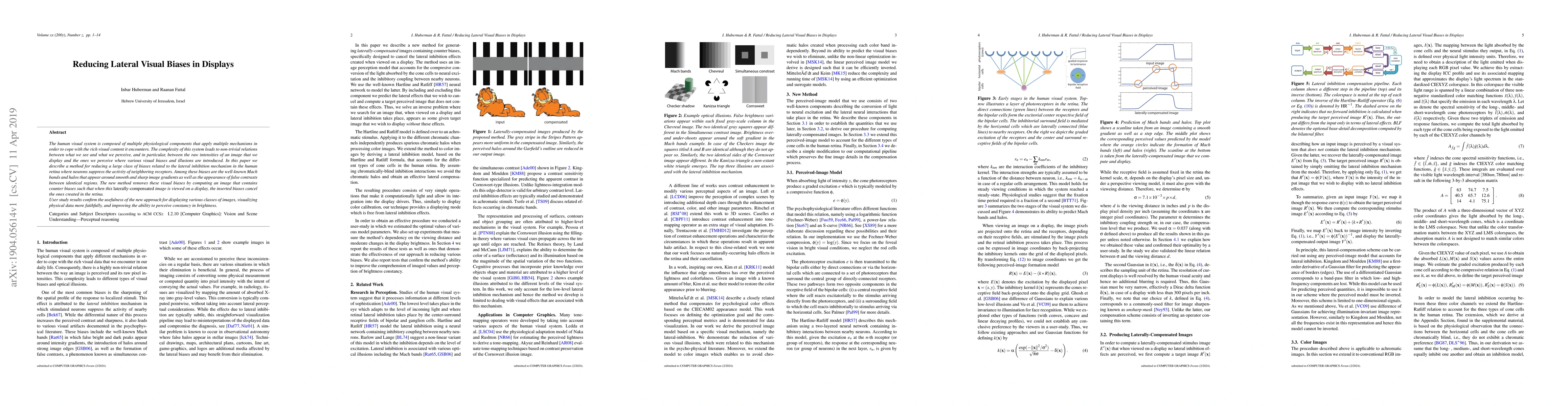 The human visual system is composed of multiple physiological components that apply multiple mechanisms in order to cope with the rich visual content it encounters. The complexity of this system leads to non-trivial relations between what we see and what we perceive, and in particular, between the raw intensities of an image that we display and the ones we perceive where various visual biases and illusions are introduced. In this paper we describe a method for reducing a large class of biases related to the lateral inhibition mechanism in the human retina where neurons suppress the activity of neighboring receptors. Among these biases are the well-known Mach bands and halos that appear around smooth and sharp image gradients as well as the appearance of false contrasts between identical regions. The new method removes these visual biases by computing an image that contains counter biases such that when this laterally-compensated image is viewed on a display, the inserted biases cancel the ones created in the retina.
