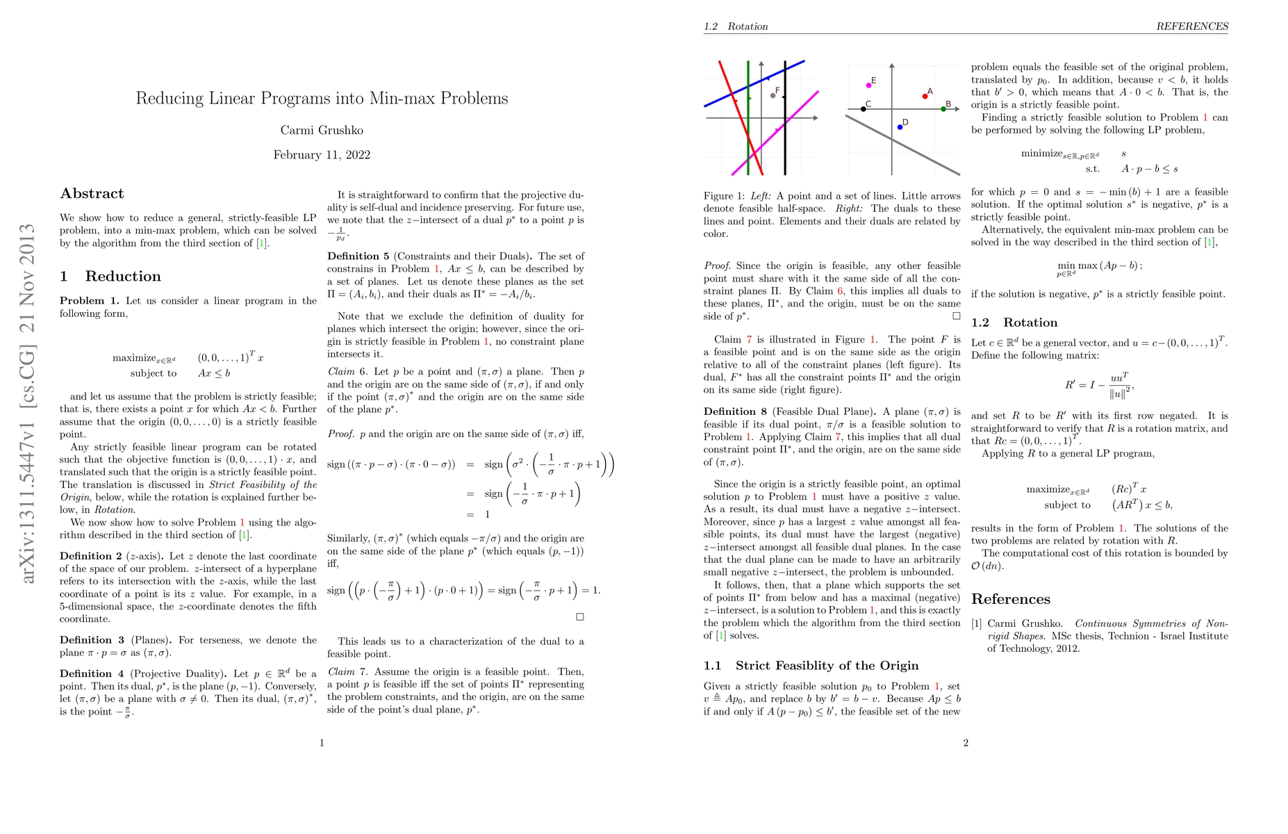 This research paper demonstrates a method to reduce linear programming problems into min-max problems, enabling their solution using an existing algorithm. The findings show that this reduction is feasible for strictly-feasible LP problems.