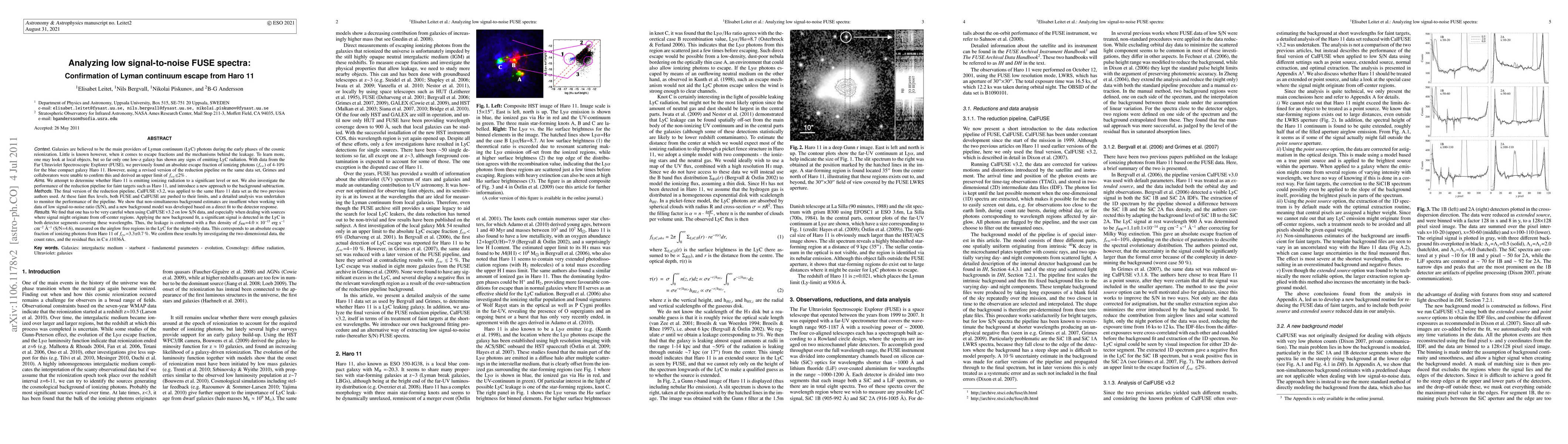 Galaxies are believed to be the main providers of Lyman continuum (LyC) photons during the early phases of the cosmic reionization. Little is known however, when it comes to escape fractions and the mechanisms behind the leakage. To learn more one may look at local objects, but so far only one low-z galaxy has shown any sign of emitting LyC radiation. With data from the Far Ultraviolet Spectroscopic Explorer (FUSE), Bergvall et al. (2006) found an absolute escape fraction of ionizing photons (f_esc) of 4-10% for the blue compact galaxy Haro 11. However, using a newer version of the reduction pipeline on the same data set, Grimes et al. (2007) could not confirm this and derived an upper limit of f_esc \leq 2%. Here, using the last version of the pipeline CalFUSE v3.2, we aim at settling the question if Haro 11 is emitting ionizing radiation to a significant level or not. We also investigate the performance of the reduction pipeline for faint targets such as Haro 11. At these faint flux levels both FUSE and CalFUSE are pushed to their limits, and a detailed analysis was undertaken. We show that non-simultaneous background estimates are insuffient when working with low signal-to-noise data, and a new background model was developed based on a direct fit to the detector response. Applying the new background fit, a significant signal in the LyC emerged in both detector segments covering these wavelengths. Thus, the leakage is confirmed with a flux density of f_900=4.0 *10^{-15} erg/s/cm^2/{\AA} (S/N=4.6), measured on the airglow free regions in the LyC for the night only data. This corresponds to an absolute escape fraction of ionizing photons for Haro 11 of f_esc=3.3 \pm 0.7%. The results were confirmed by investigating the 2D data, the count rates and the residual flux in CII(1036{\AA}).