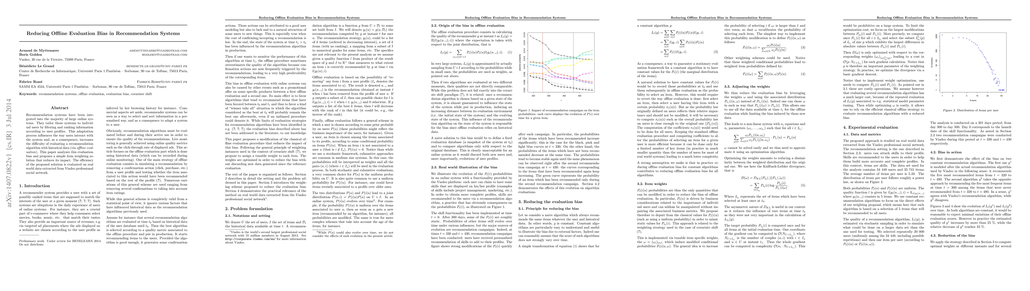 This paper examines the evaluation bias in recommendation systems during offline assessments and proposes a simple item weighting method to mitigate this bias. It demonstrates the effectiveness of this approach using real-world data from Viadeo's professional social network.