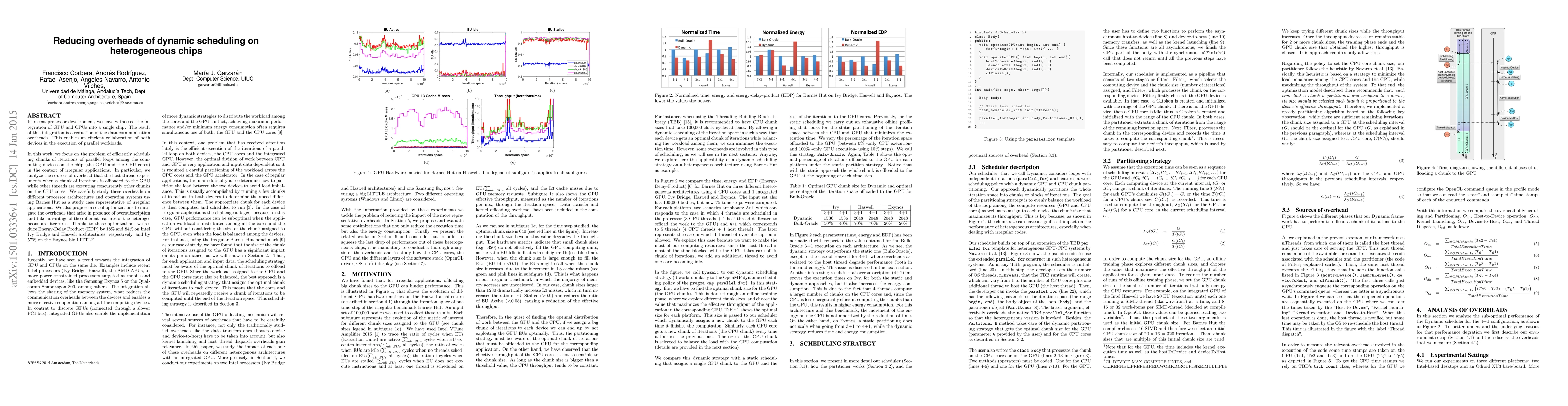 In recent processor development, we have witnessed the integration of GPU and CPUs into a single chip. The result of this integration is a reduction of the data communication overheads. This enables an efficient collaboration of both devices in the execution of parallel workloads. In this work, we focus on the problem of efficiently scheduling chunks of iterations of parallel loops among the computing devices on the chip (the GPU and the CPU cores) in the context of irregular applications. In particular, we analyze the sources of overhead that the host thread experiments when a chunk of iterations is offloaded to the GPU while other threads are executing concurrently other chunks on the CPU cores. We carefully study these overheads on different processor architectures and operating systems using Barnes Hut as a study case representative of irregular applications. We also propose a set of optimizations to mitigate the overheads that arise in presence of oversubscription and take advantage of the different features of the heterogeneous architectures. Thanks to these optimizations we reduce Energy-Delay Product (EDP) by 18% and 84% on Intel Ivy Bridge and Haswell architectures, respectively, and by 57% on the Exynos big.LITTLE.
