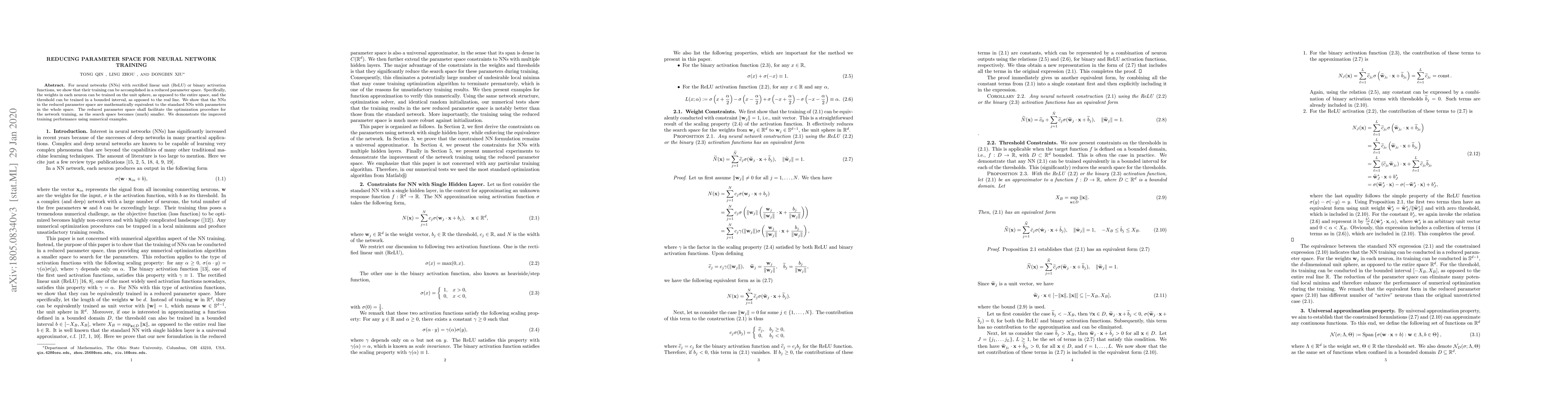 This paper demonstrates that neural networks with ReLU or binary activation functions can be trained effectively within a reduced parameter space, specifically by training weights on the unit sphere and thresholds in a bounded interval, without loss of mathematical equivalence to standard NNs. This approach simplifies optimization and enhances training performance, as shown through numerical examples.