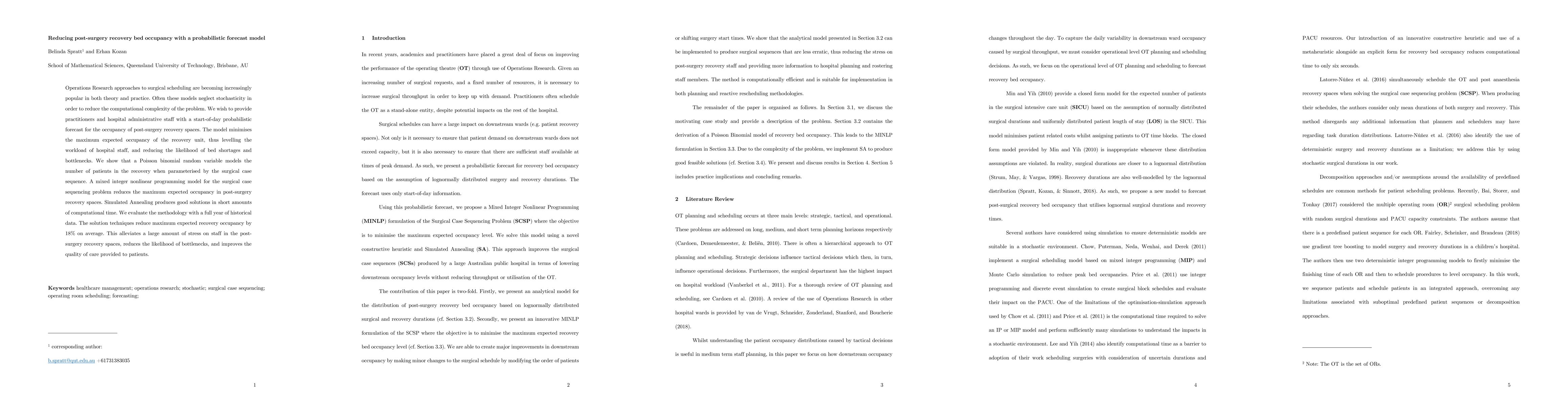 A probabilistic forecast model reduces post-surgery recovery bed occupancy by 18% on average, alleviating staff stress and improving patient care.