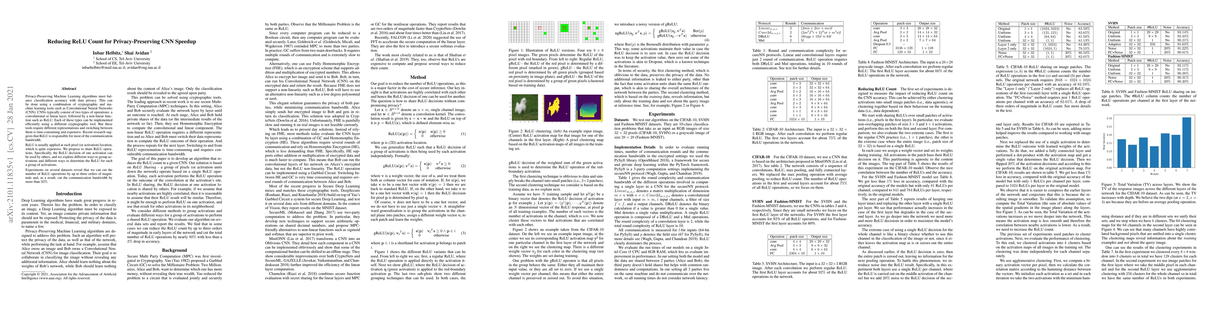 Privacy-Preserving Machine Learning algorithms must balance classification accuracy with data privacy. This can be done using a combination of cryptographic and machine learning tools such as Convolutional Neural Networks (CNN). CNNs typically consist of two types of operations: a convolutional or linear layer, followed by a non-linear function such as ReLU. Each of these types can be implemented efficiently using a different cryptographic tool. But these tools require different representations and switching between them is time-consuming and expensive. Recent research suggests that ReLU is responsible for most of the communication bandwidth. ReLU is usually applied at each pixel (or activation) location, which is quite expensive. We propose to share ReLU operations. Specifically, the ReLU decision of one activation can be used by others, and we explore different ways to group activations and different ways to determine the ReLU for such a group of activations. Experiments on several datasets reveal that we can cut the number of ReLU operations by up to three orders of magnitude and, as a result, cut the communication bandwidth by more than 50%.