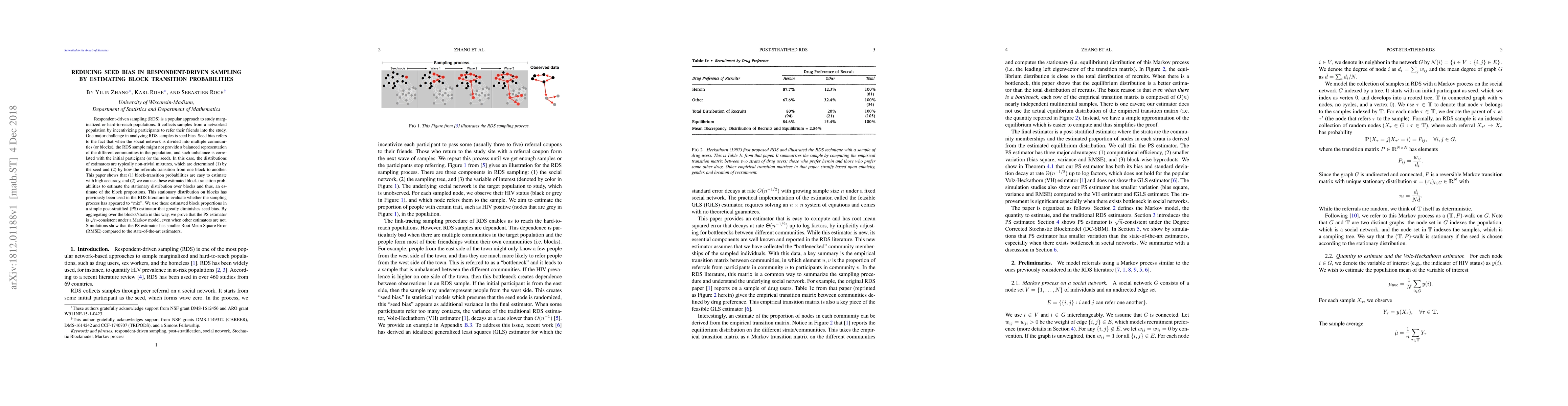 This paper proposes a method to reduce seed bias in respondent-driven sampling (RDS) by estimating block transition probabilities to better represent different communities. The post-stratified estimator using these probabilities significantly diminishes seed bias and shows improved RMSE in simulations.