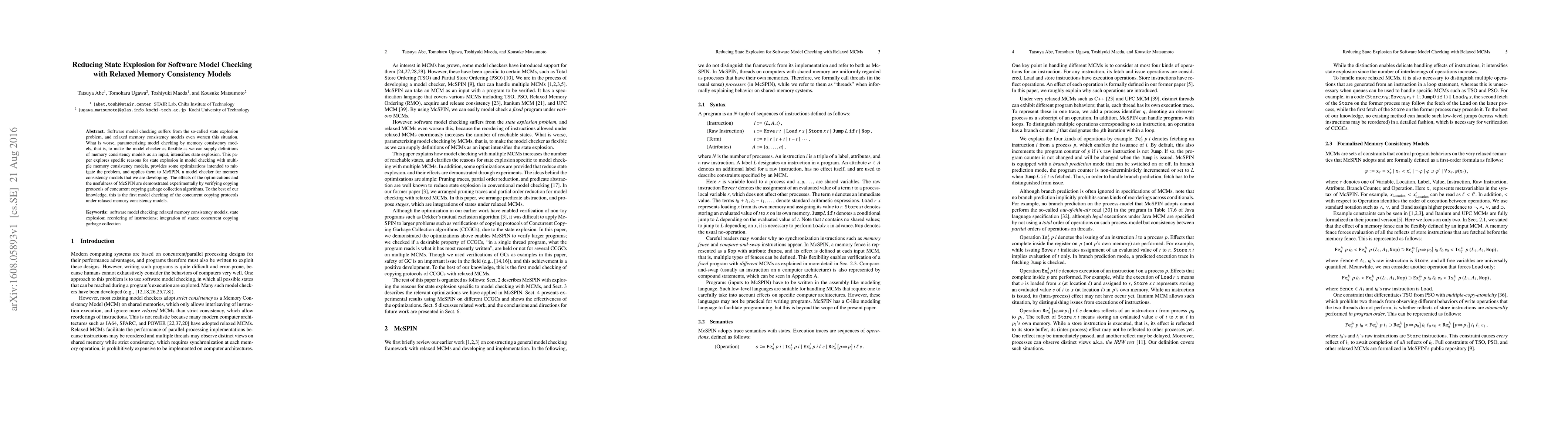 This paper investigates the state explosion problem in software model checking, especially under relaxed memory consistency models, and proposes optimizations to mitigate this issue using McSPIN, a new model checker. Experimental results demonstrate the effectiveness of the optimizations by verifying concurrent copying garbage collection algorithms.