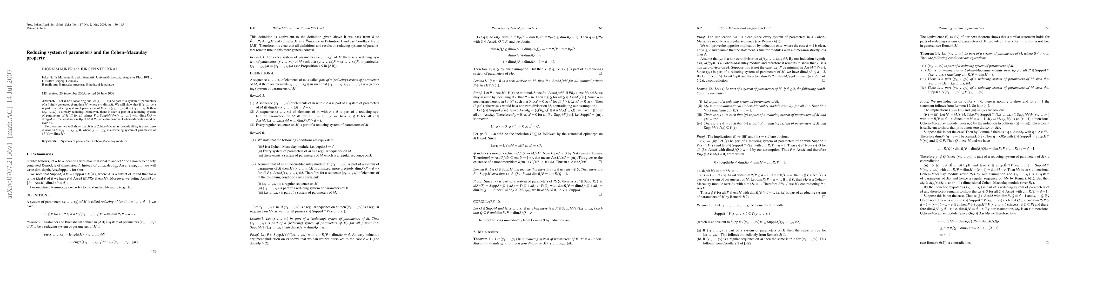 Let $R$ be a local ring and let ($x_1\biss x_r$) be part of a system of parameters of a finitely generated $R$-module $M,$ where $r < \dim_R M$. We will show that if ($y_1\biss y_r$) is part of a reducing system of parameters of $M$ with $(y_1\biss y_r)M=(x_1\biss x_r)M$ then $(x_1\biss x_r)$ is already reducing. Moreover, there is such a part of a reducing system of parameters of $M$ iff for all primes $P\in \supp M \cap V_R(x_1\biss x_r)$ with $\dim_R R/P = \dim_R M -r$ the localization $M_P$ of $M$ at $P$ is an $r$-dimensional \cm\ module over $R_P$. Furthermore, we will show that $M$ is a \cm module iff $y_d$ is a non zero divisor on $M/(y_1\biss y_{d-1})M$, where $(y_1\biss y_d)$ is a reducing system of parameters of $M$ ($d := \dim_R M$).