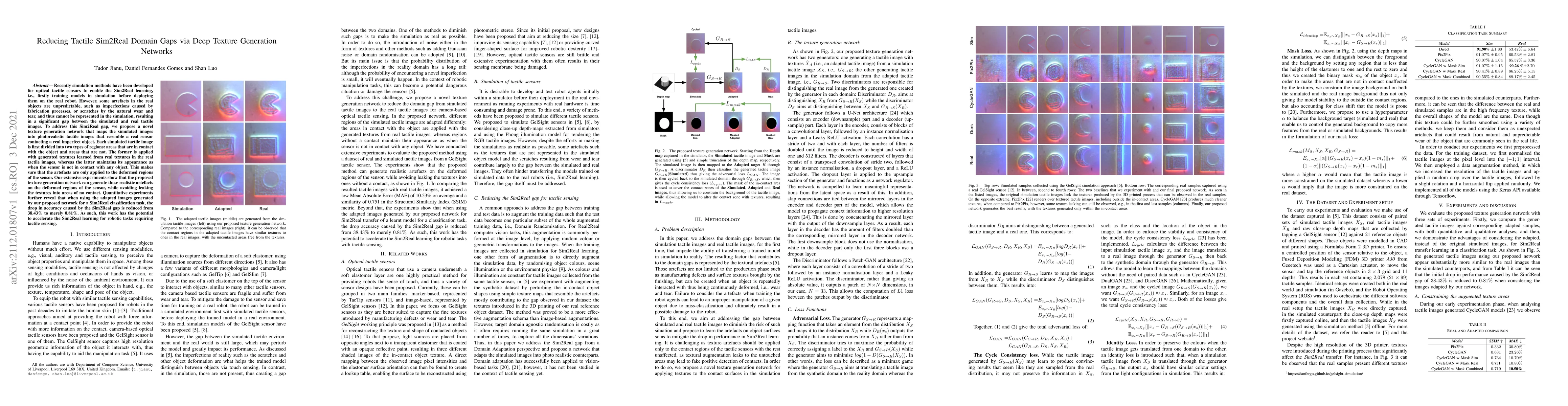 This paper proposes a novel texture generation network to reduce the Sim2Real domain gap in tactile sensors by simulating imperfections in real tactile images. The network generates realistic textures for contact regions of simulated tactile images, thereby bridging the gap between simulated and real tactile data, leading to a significant reduction in accuracy drop during real deployment.