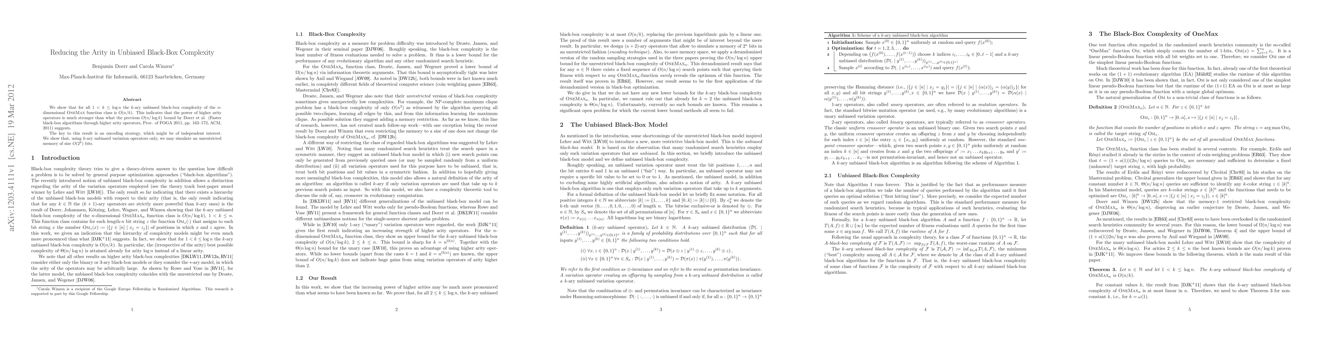 This paper demonstrates that the $k$-ary unbiased black-box complexity for the $n$-dimensional $\onemax$ function class is $O(n/k)$, significantly improving upon the previous $O(n/\log k)$ bound. The authors achieve this by employing a novel encoding strategy that allows for simulating large memory using only $k$-ary operators.