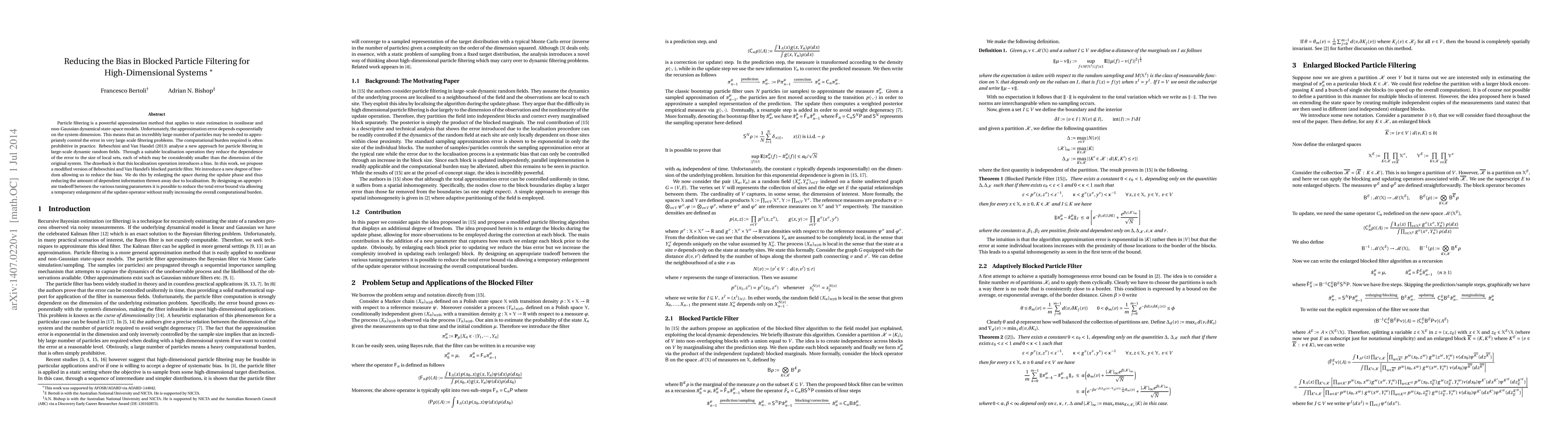 This paper proposes a modified blocked particle filtering method to reduce bias in high-dimensional systems, addressing the exponential error dependence on system size. By temporarily enlarging the update space, the method minimizes the discarded dependent information, thus reducing bias while maintaining computational efficiency.