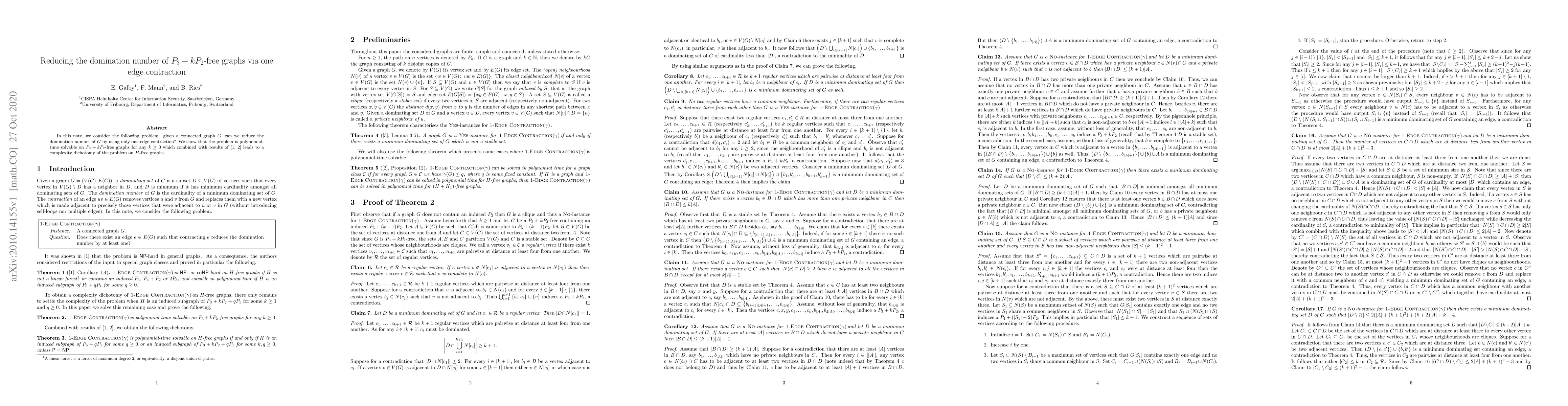 In this note, we consider the following problem: given a connected graph $G$, can we reduce the domination number of $G$ by using only one edge contraction? We show that the problem is polynomial-time solvable on $P_3+kP_2$-free graphs for any $k \geq 0$ which combined with results of [1,2] leads to a complexity dichotomy of the problem on $H$-free graphs.