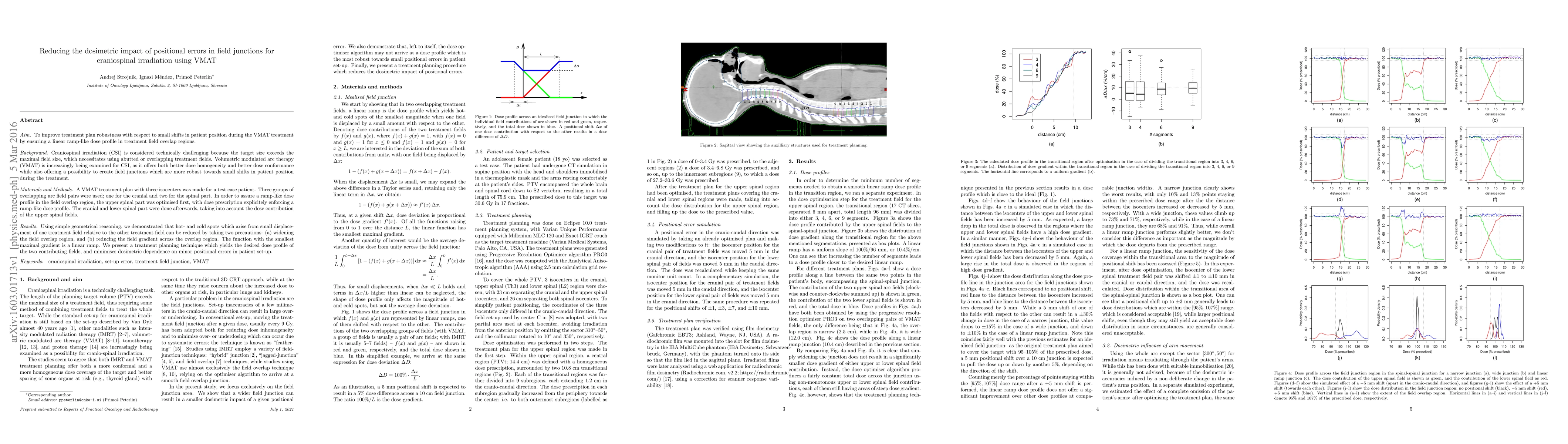 Researchers developed a method to reduce dosimetric errors in craniospinal irradiation using Volumetric Modulated Arc Therapy (VMAT), improving treatment plan robustness against small shifts in patient position.