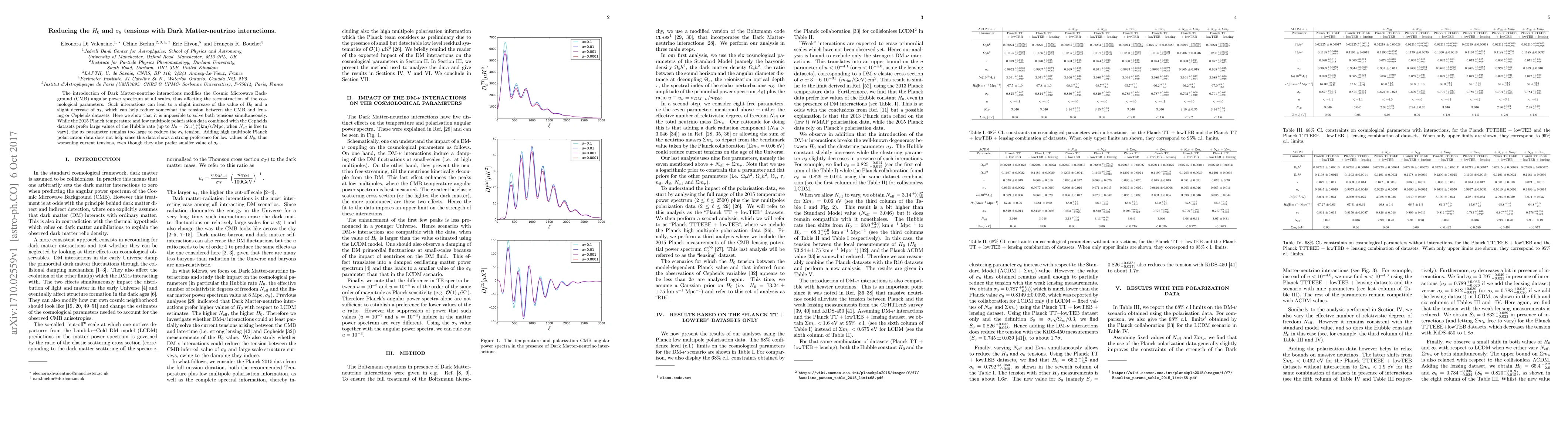 This paper explores how Dark Matter-neutrino interactions can slightly modify cosmological parameters, potentially reducing tensions between CMB and other datasets. However, it concludes that these interactions cannot simultaneously resolve both the $H_0$ and $\sigma_8$ tensions, as high multipole data prefers lower $H_0$ and higher $\sigma_8$.