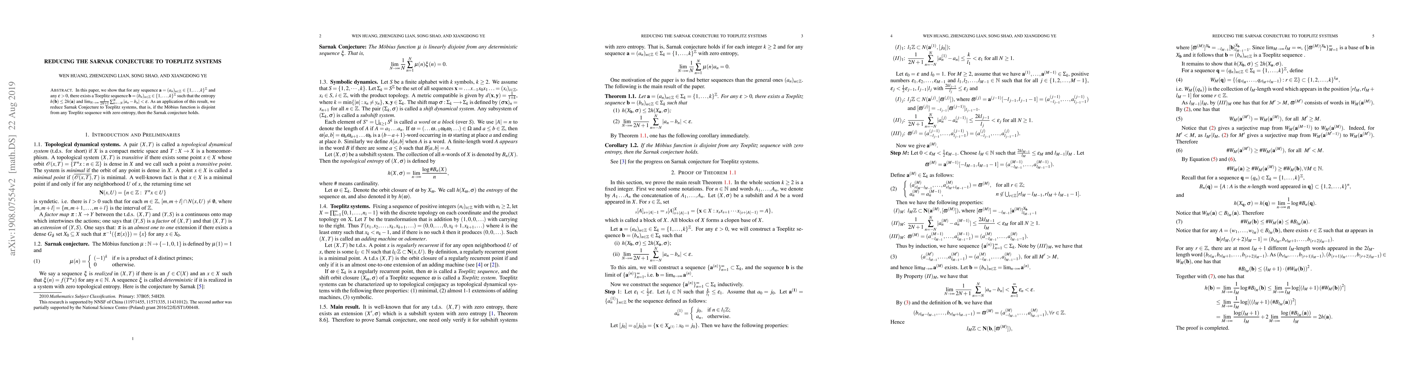 This paper demonstrates a method to reduce the Sarnak Conjecture to Toeplitz systems by showing that any sequence can be approximated by a Toeplitz sequence with controlled entropy and error. The result implies that the Sarnak Conjecture holds if the Möbius function avoids Toeplitz sequences of zero entropy.