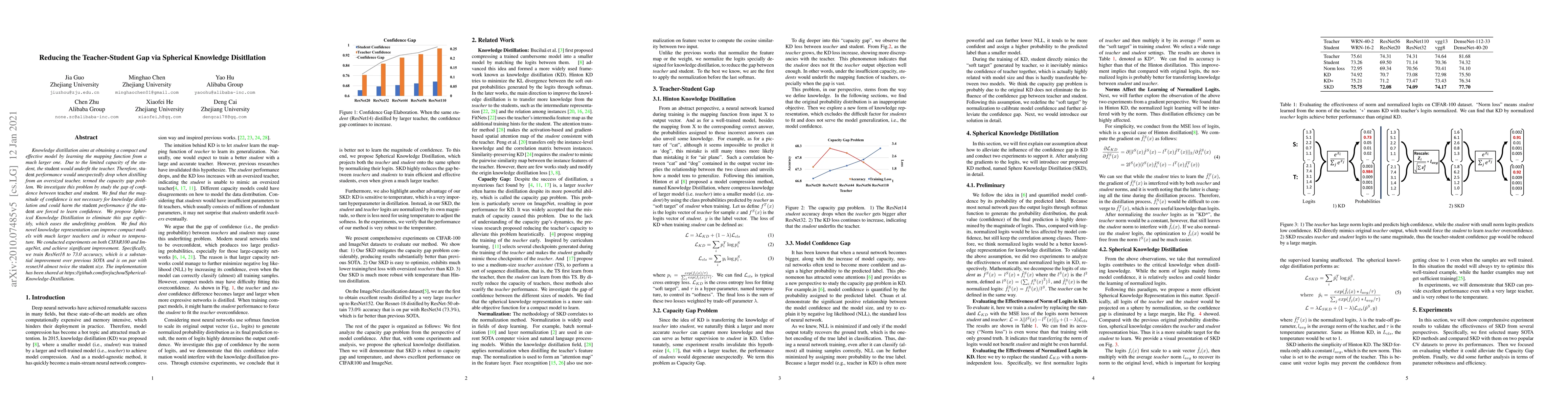 Knowledge distillation aims at obtaining a compact and effective model by learning the mapping function from a much larger one. Due to the limited capacity of the student, the student would underfit the teacher. Therefore, student performance would unexpectedly drop when distilling from an oversized teacher, termed the capacity gap problem. We investigate this problem by study the gap of confidence between teacher and student. We find that the magnitude of confidence is not necessary for knowledge distillation and could harm the student performance if the student are forced to learn confidence. We propose Spherical Knowledge Distillation to eliminate this gap explicitly, which eases the underfitting problem. We find this novel knowledge representation can improve compact models with much larger teachers and is robust to temperature. We conducted experiments on both CIFAR100 and ImageNet, and achieve significant improvement. Specifically, we train ResNet18 to 73.0 accuracy, which is a substantial improvement over previous SOTA and is on par with resnet34 almost twice the student size. The implementation has been shared at https://github.com/forjiuzhou/Spherical-Knowledge-Distillation.