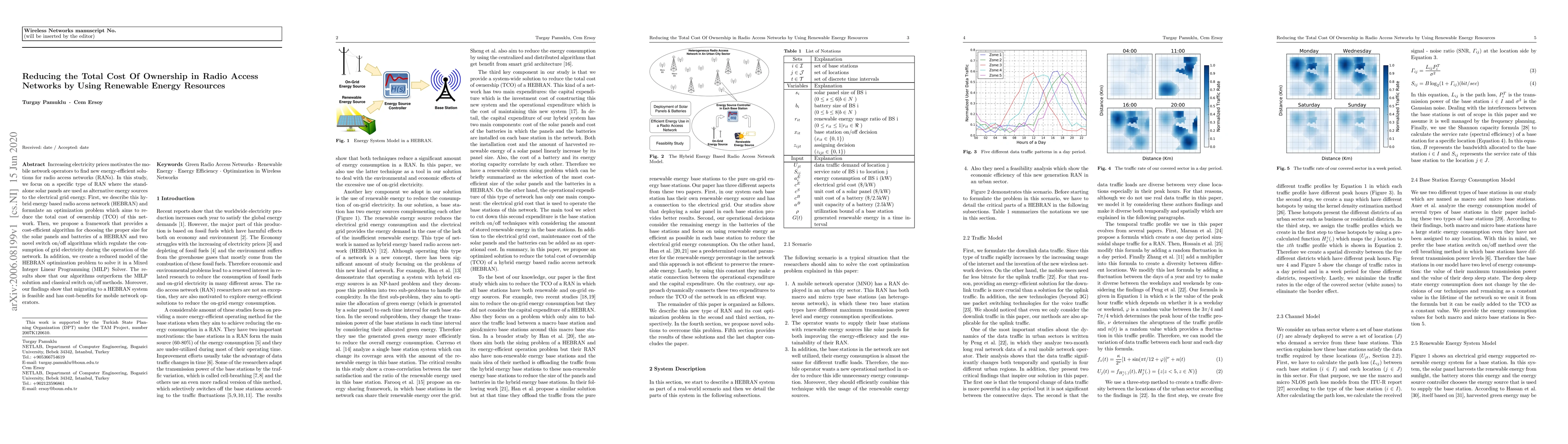 This paper explores hybrid energy-based radio access networks (HEBRAN) that utilize stand-alone solar panels to reduce total ownership costs. The study proposes optimization algorithms and switch on/off methods for efficient grid electricity usage, demonstrating cost-benefits and feasibility for mobile network operators.