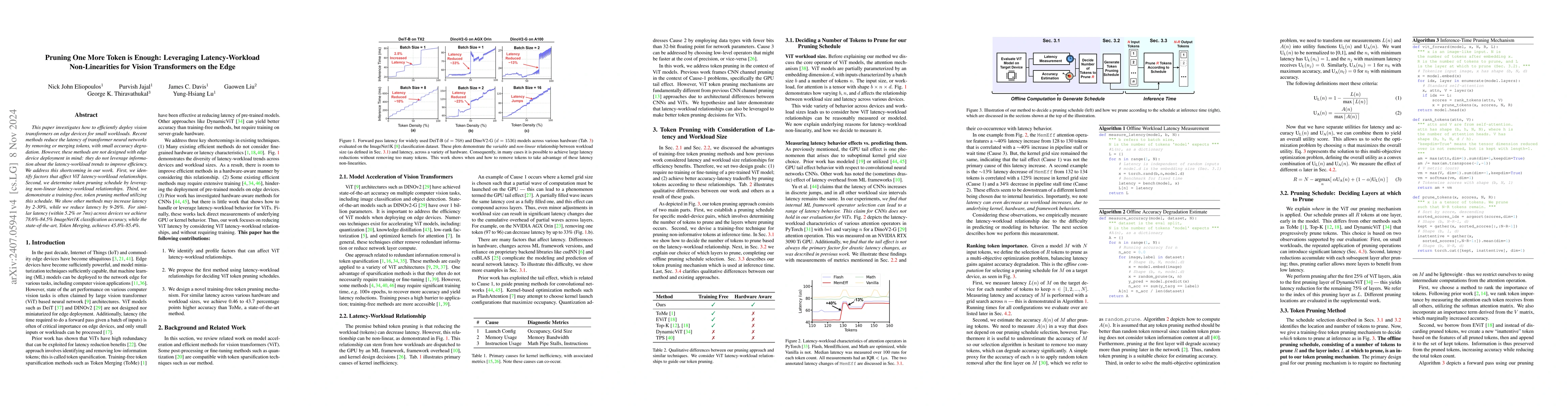 This paper proposes GPU tail effect-based token pruning and a training-free approach to reduce latency for transformer models on edge devices. While other methods may increase latency, this method achieves a 9% reduction and higher accuracy across devices, achieving 78.6%-84.5% ImageNet1K accuracy.