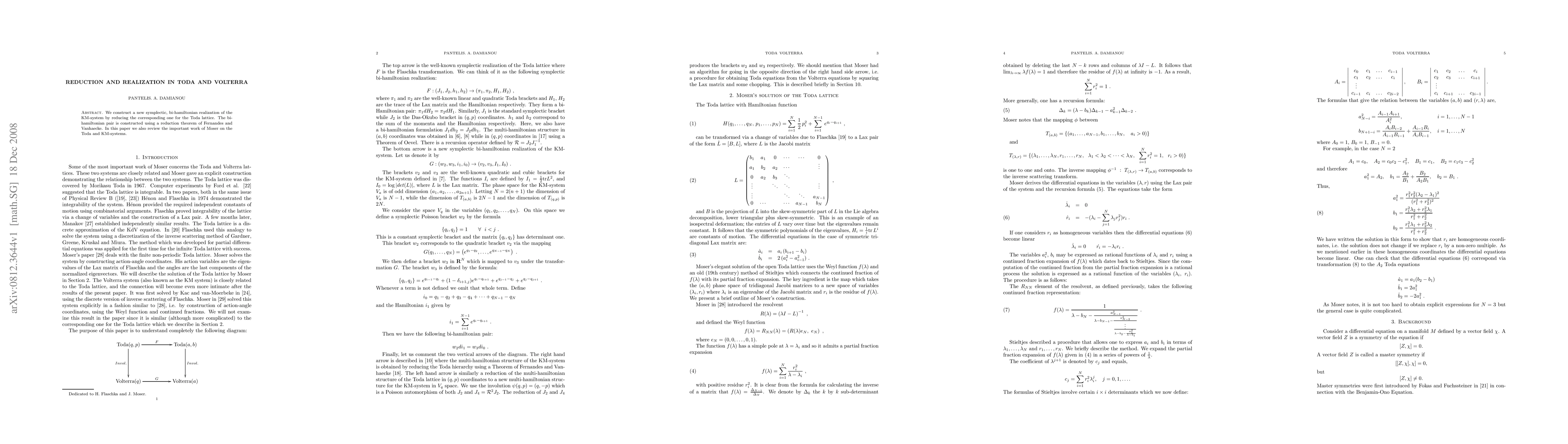 This paper presents a new symplectic, bi-hamiltonian realization of the KM-system through the reduction of the Toda lattice's corresponding system, utilizing a reduction theorem by Fernandes and Vanhaecke. Additionally, it reviews Moser's significant contributions to the Toda and KM-systems.