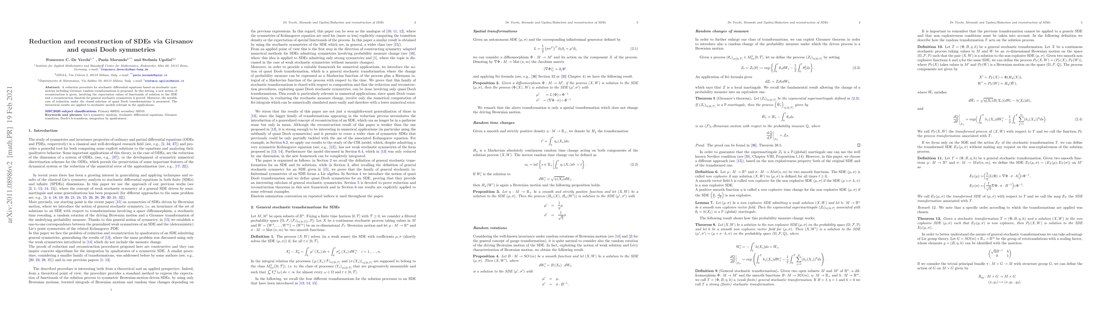 This paper proposes a new method for reducing stochastic differential equations using Girsanov transformations and quasi-Doob symmetries, enabling the reconstruction of SDEs from reduced models with improved accuracy.