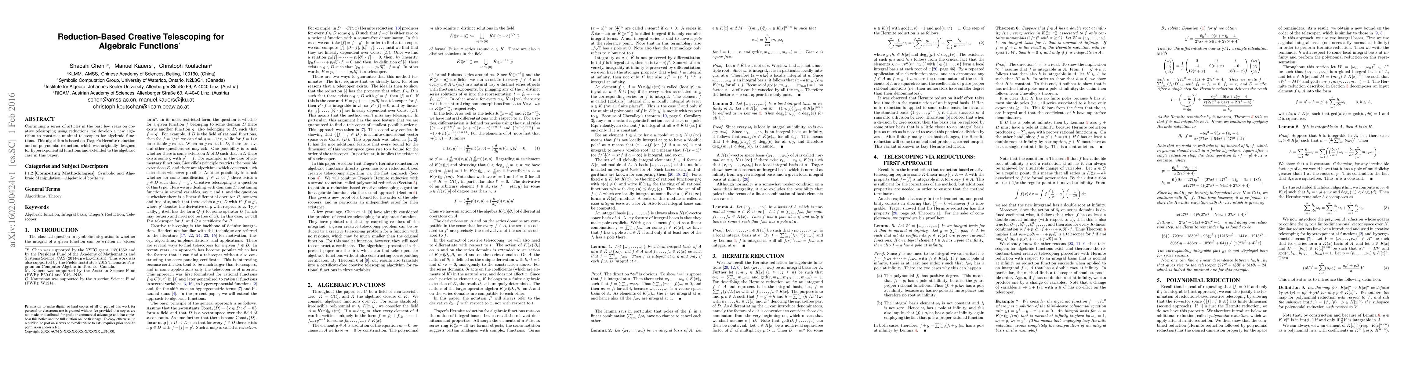 Continuing a series of articles in the past few years on creative telescoping using reductions, we develop a new algorithm to construct minimal telescopers for algebraic functions. This algorithm is based on Trager's Hermite reduction and on polynomial reduction, which was originally designed for hyperexponential functions and extended to the algebraic case in this paper.