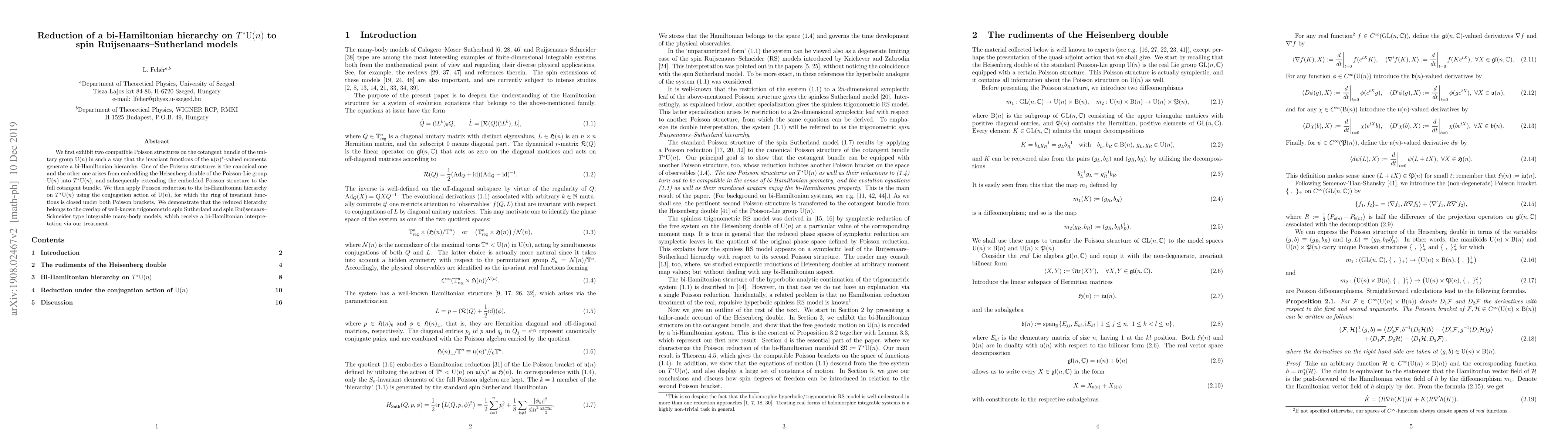 This paper presents a bi-Hamiltonian hierarchy on the cotangent bundle of $\mathrm{U}(n)$, revealing two compatible Poisson structures. It then applies Poisson reduction to show that the reduced hierarchy corresponds to spin Ruijsenaars-Sutherland models, providing a bi-Hamiltonian interpretation for these models.