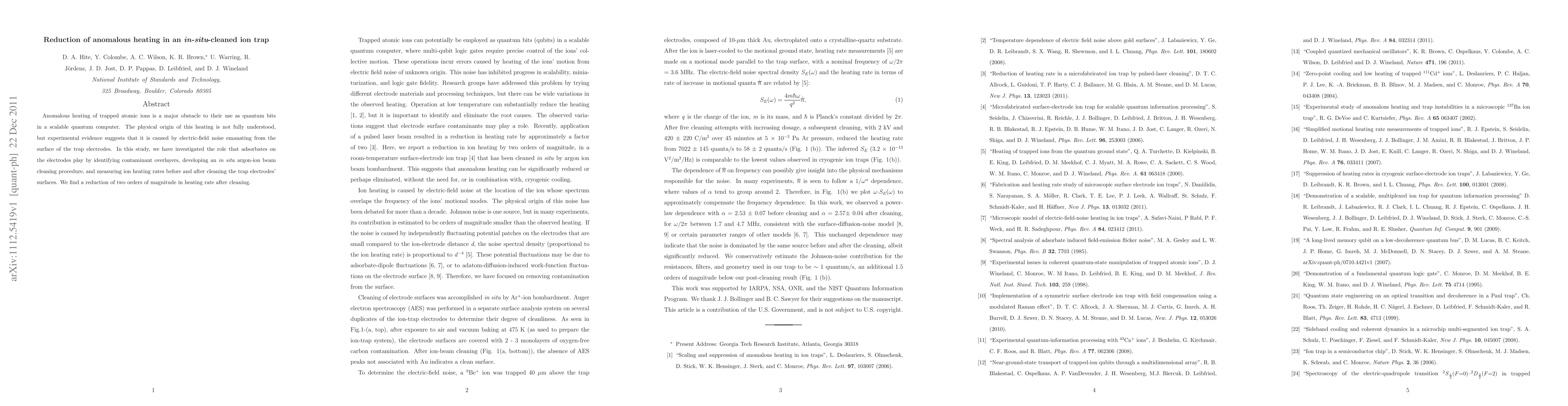 This study investigates the reduction of anomalous heating in ion traps by cleaning trap electrode surfaces using an in situ argon-ion beam. The results show a two-order-of-magnitude decrease in heating rates, suggesting that contaminants on electrode surfaces significantly contribute to the heating.