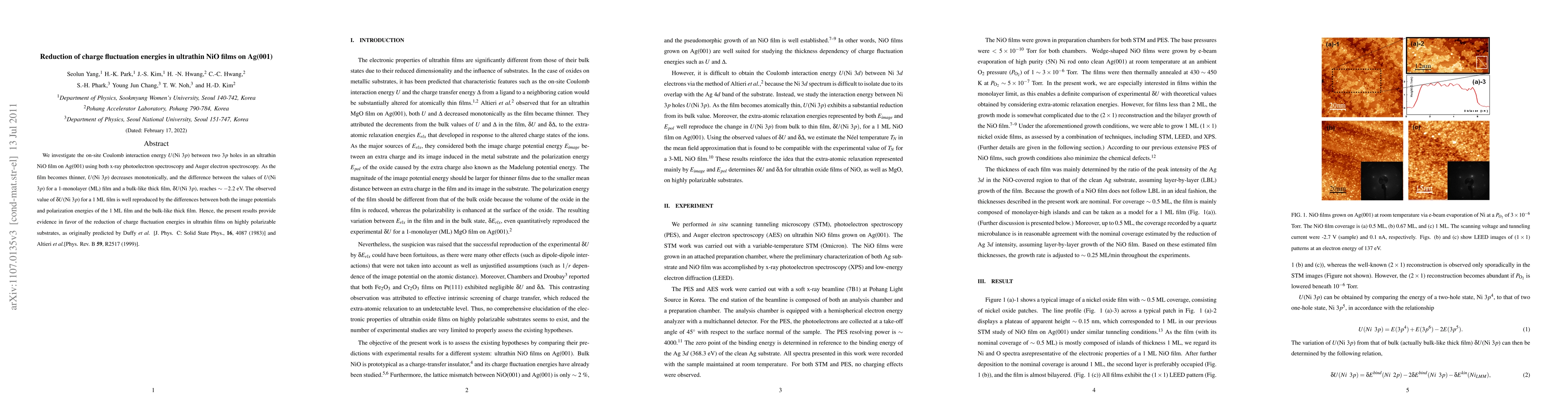 We investigate on-site Coulomb interaction energy between two 3p holes U(Ni 3p) of ultrathin NiO films on Ag(001) by both x-ray photoelectron spectroscopy and Auger electron spectroscopy. As the film becomes thin, U(Ni 3p) monotonically decreases, and the difference of U(Ni 3p) for 1 monolayer (ML) film from that of bulk-like thick film \delta U(Ni 3p) reaches ~ -2.2 eV. The observed \delta U(Ni 3p) for 1 ML film is well reproduced by the differences of both the image potential and polarization energies between 1 ML film and the bulk-like thick film. Hence, the present results provide an evidence for the picture originally proposed by Duffy et al. [J. Phys. C: Solid State Phys., 16, 4087 (1983)] and Altieri et al. [Phys. Rev. B 59, R2517 (1999)]