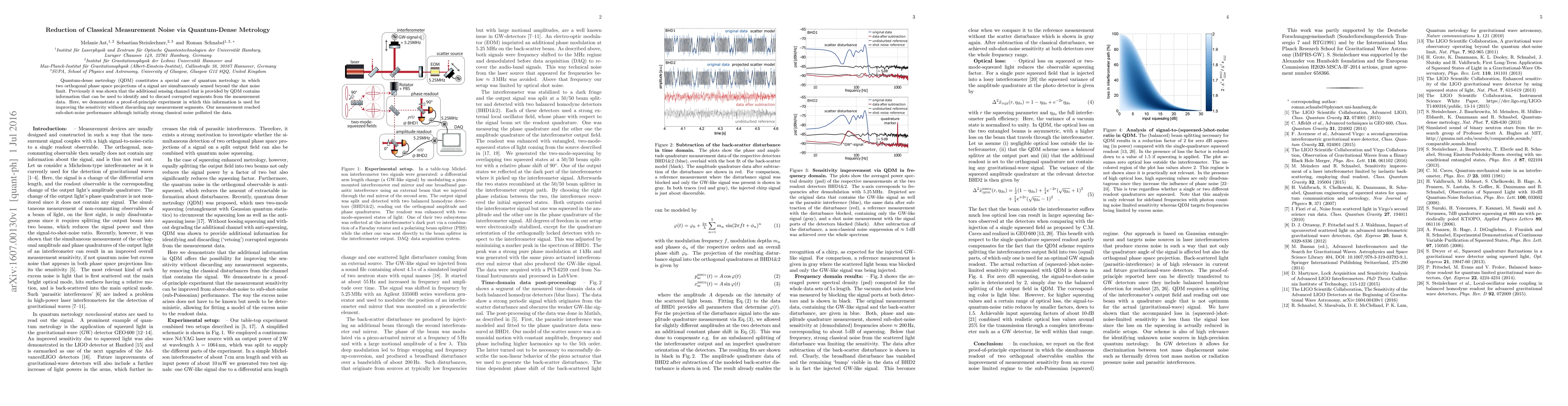 Quantum-dense metrology (QDM) constitutes a special case of quantum metrology in which two orthogonal phase space projections of a signal are simultaneously sensed beyond the shot noise limit. Previously it was shown that the additional sensing channel that is provided by QDM contains information that can be used to identify and to discard corrupted segments from the measurement data. Here, we demonstrate a proof-of-principle experiment in which this information is used for improving the sensitivity without discarding any measurement segments. Our measurement reached sub-shot-noise performance although initially strong classical noise polluted the data.