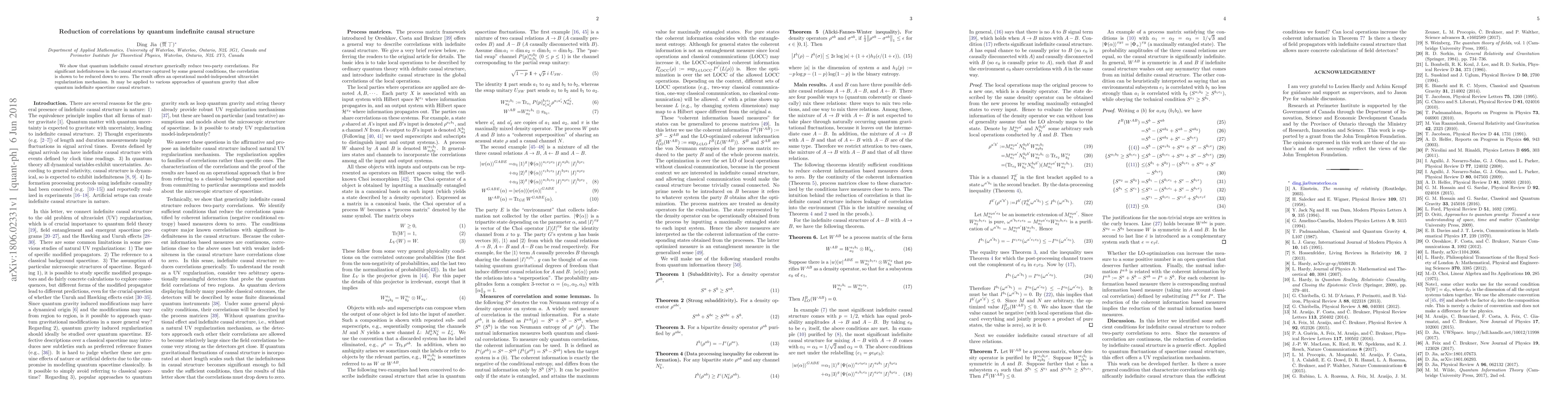 This paper demonstrates that quantum indefinite causal structures can reduce two-party correlations, with significant indefiniteness leading to zero correlation. This offers a model-independent ultraviolet regularization mechanism applicable to quantum gravity theories allowing such causal structures.